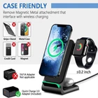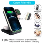 *3-in-1 Design wireless charging station Powered from only one outlet, can charge 3 devices simultaneously. Reduce charging cable, all of this will keep your desk tidy, and help you end the mess cords life. *QI Certified Safety Charger Advanced temperature control and more combined with full CE, and FCC, certification for complete peace of mind. 3 in 1 WIRELESS CHARGING HELP YOU SAY GOODBYE TO MESSY CABLE. *Product Specifications Product socket: TYPE-C Material: ABS Product Standard: QI Input voltage / current: 9V-2A Apple Watch Output Power: 3W Wireless charging power: 10W 7.5W 5W 3W Working frequency: 100-200Khz Charging distance: 2-8MM *Package Include: 1 x 3 in 1 Wireless Charger 1 x Charging cable 1 x User Manual 1 x Adapter *Please note: 1. This wireless charger for iPhone supports apple watch only( Note: Apple Watch Series 1 is not supported). 2. Avoid using a thick protecting case (<8mm) while charging your device. 3. If the indicator light flashes, it may be due to the detection of foreign objects and entering the protection mode (please remove foreign objects and try again) 【Multifunction Wireless Charging Stand】: 3 in 1wireless charger stand the design of the built-in professional wireless charging coil, instead of the traditional redundant data cable, your AirPods Pro, Phone, and Apple Watch charge simultaneously with only 1 USB-C cable, making your desk or nightstand neatly and organized 【Unque Shaped Design】: The wireless charging station can charge up to three devices at once, friendly horizontal position charging For Apple Watch and Air Pods, the base is coated with silicone throughout the body to fully prevent the device from offset and sliding, ensuring stable charging 【Quick Identification】: Built-in 2 high-purity copper coils provide you with a larger charging area, you can sensitively identify the phone, you can charge in any direction in the vertical or horizontal direction, and you can charge horizontally when watching videos. Or send messages and face recognition in vertical mode. Note: Magnetic, metal and credit cards will make the LED flash and prevent charging 【Safe Charger Dock】: The upgraded cooling system, Greatly reduces the heat generated during the charging process. Approved by Qi, KC, and CE it brings your device multiple protection. Double guarantee and dual safety provide you safety experience, Our qi charger comes with a 1-year warranty and 12-hour response service. If you have any questions, you can directly contact customer service 【Perfect Compatibility】: wireless charging standard output for Air pods 2/ Pro and i Watch series6/SE/5/4/3/2 38/42mm; 7. 5W fast charging for Phone12(Not for mini)/12pro max/11/11 Pro/11 Pro Max/XS/XS MAX/XR/X/8/8 Plus; 10W fast charging for Samsang Galaxy S9+, S9, Note 9, Note 8, S8, S8+, S7, S7 edge, S6 edge+, Note 5 ( Note: 3 devices When charging, please use a 9V-2A QC3.0 adapter, adapter not included package)