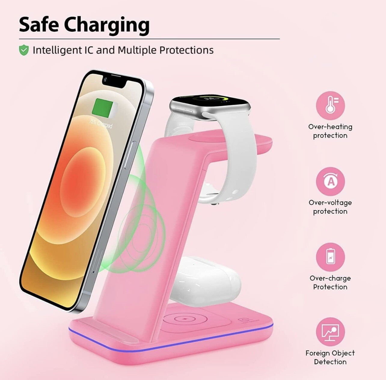 3-in-1 Fast Wireless Charging Station for Phone, Watch & Earbuds