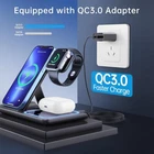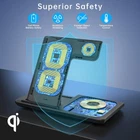 【3 in 1 Wireless Charger】 This charging station can charge most phones, support fast charging for multiple devices apple at the same time, compatible with iPhone 13/13Pro/13 Pro Max/12/12 Pro/12 Pro Max/SE/XR/X/XS/XS Max/11 Pro Max/11 Pro/11/8 Plus/8 or Android; Apple Watch 7/6/5/4/3/2/SE, Airpods Pro/3/2 with wireless case(not for Airpods 2 non-wireless version). A must device for apple fans. Say goodbye to individual chargers. 【Fast Wireless Charging Station】 Just place your multiple devices on the charger station, enjoy fast wireless charging. After many extreme tests and feedback from fans, we use high-power charging chips and world-class electronic components to ensure the quality of the phone charging station, and an 18W equipped adapter, it takes about 2-3 hours to give your cell phone, watch, and earbuds a full charge. 【Portable & Foldable Travel Charger Stand】 The charging station for iphone is foldable, light and portable, and can be put in a bag or suitcase. This wireless charging pad is not only suitable for your home, office, if you are traveling or on a business trip, bring this 3in1 charger, which can charge multiple devices at once. Also, Versatile as a cell phone stand with angle adjustment. it's as a charging pad, just leave the phone flat to keep it charging. 【Safe Wireless Charging Dock】 The wireless phone charger Dual-coil design ensures a wider charging area in landscape or portrait orientation. With over-current protection, over-voltage protection and over-temperature protection, as well as foreign object detection function. Reasonable internal circuit design can prevent overcharge damage to the equipment battery and ensure safe charging of the device. 【Smart Breathing Nightlight】 This phone charging station looks sleek and won’t take up much space on your nightstand and bedside. The blue light indicates that your phone is properly charging, while a flash blue light alerts you that there is a foreign object or phone is misplaced. The charging pad can be turned on/off manually if you are disturbed by the light. A perfect desk lamp with wireless charger. 【Anti-Slip and Case Friendly】 Anti-slip silicone pads protect your devices from sliding off. Our wireless charger stand can charges directly through phone protective cases≤2.5mm(0.1 inch), saves the trouble to remove phone case while charging. A best cell phone accessory for your desktop and bedside, now right to simplify your life space! (Note: remove the magnetic or metal accessories from the phone case when charging.) 【Perfect Gift for Families】 The package includes a 3 in 1 charging station, a Charging Cable, and a user guide. The wireless charger station is a perfect décor to the desk and valentines day gifts for him and awesome Christmas gift for your families and friends. Should you have any questions or issues, please feel free to contact us! Supported Devices: For iPhone 14,13,12,11(Pro,Pro max,Mini), X, XR, XS, XS Max, 8, 8 Plus For Samsung Galaxy S21,S20,S10, S9, S8 Series, Note 20,10, 9, 8, 7Series and more; For Apple Watch 7/6/ SE/ 5/ 4/ 3/ 2 For AirPods 3/2/Pro