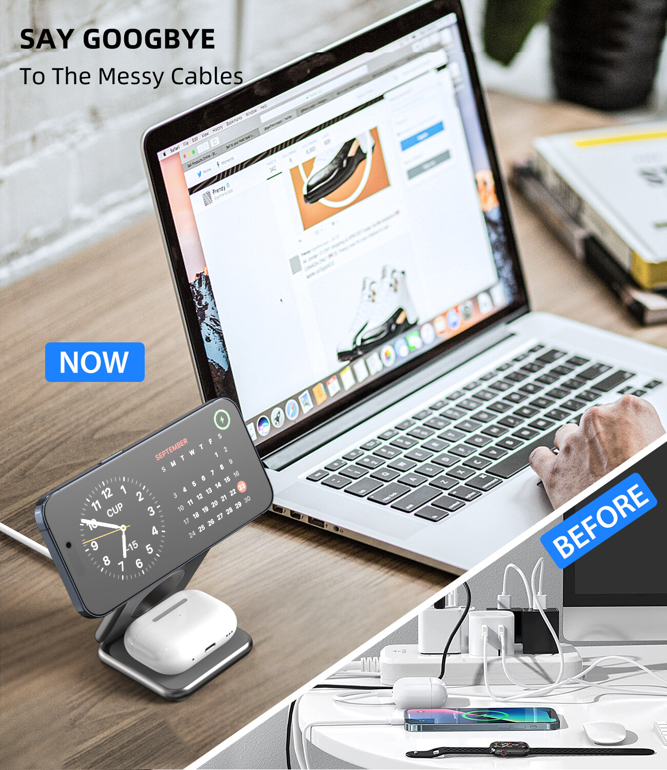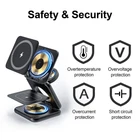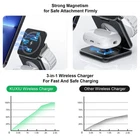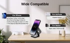 Specification: Connectivity Technology: Wireless Wireless Charging Standard: Magnetic Connector Type: USB Type C Type:Ch arg ing Dock Items Included:Charging Cable Compatible Devices: IPhone, Apple Watches, AirPods Color:Blue Input Voltage:5 Volts (AC) Mounting Type: Please use the QC3.0 adapter included in the package to charge your 3 devices. UPC:Does not apply Feature: [Unique Design for apple Fans] 3 in 1 wireless charging station combines the advantages of all other wireless charger devices, from flat-lay to dock charging, and has developed into an excellent work to meet all your needs: 1. wireless charging 3 in 1 at the same time; 2. half size of your phone after foldable; 3. N52 magnetic function 4. Free QC 3.0 adapter included; 5. all aluminum alloy, high-end texture. [Palm Size Foldable Charger] The innovative design of three roll axes makes the charger functional in charging styles. Fold it up for horizontal charging. Unfold it to be a stand for vertical charging. After being folded, this charging station has only half size of the iPhone and less than one inch thick. Only 0.43lb, Small enough, portable enough. You can take it anywhere without taking up space. A huge stride in portability and angle adjustment opens up a new wireless charging world. [Strong Magnetic Wireless Charging] Built-in high-quality magnets to hold iPhone precisely in the best charging position and lock automatically. Built-in 3 coils wide charging area to bring you a fast and stable wireless charging experience. Put your iPhone onto the device horizontally or vertically to get it charged instantly. Compatible with iPhone 14/13/12 series (Please work without cases, or use mag safe/magnetic cases) [Aviation Grade Aluminum Alloy Material] The full aluminum alloy process and stainless steel roll axis ensure great durability, while the exquisitely rounded corners and texture provide a comfortable touch. The metal body also ensures better heat dissipation. Besides, it has anti-slip silicone layer on the surface. Qi-Certified & Safe Multi-Protection to protect your device's battery from over-charge damage. Compatible models : For IPhone 14, iPhone 14 Plus, iPhone 14 Pro, iPhone 14 Pro Max, iPhone 13 mini, iPhone 13, iPhone I3 Pro, iPhone 13 Pro Max, iPhone 12 mini, iPhone 12, iPhone 12 Pro, iPhone 12 Pro Max; IWatch 8/7/6/5/4/3/2/SE; AirPods 2/ AirPods Pro/ AirPods Pro 2/ AirPods 3. Package Includes: 1* 3 in 1 wireless charging station (Weight: 195g / 0.43lb) 1* 20W fast charging adapter 1* type-C to type-C cable 1* exquisite case Notes: 1: Please use our 20W fast adapter or other fast charging adapters to achieve the best charging effect. 2: Please do NOT charge this wireless charger directly by computer or other similar devices usb port. Products with electrical plugs are designed for use in the US. Outlets and voltage differ internationally and this product may require an adapter or converter for use in your destination. Please check compatibility before purchasing.