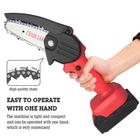 Features: 【UPGRADED ELECTRIC CHAINSAW】We has launched a upgrade handheld small mini chainsaw,It is not only a 4-inch electric saw, but also come with a 4-inch saw blade and 2 pcs chain,which can be switched to cut different types of wood 【HIGHLY EFFICIENT HANDHEDLD CHAINSAW】 The rechargeable mini chainsaw, has been deeply quenched to ensure smooth cutting,the wooden teeth design can make the chain saw stuck on the branches, cutting more efficiently and faster.The handheld wireless mini chain saw takes about 10 seconds to cut a log with a diameter of 15 cm (the specific value varies with the actual size and hardness of the wood). 【ONE-HANDED OPERATION CHAINSAW】Cordless chainsaw has a non-slip handle, is ergonomically designed, you only need to hold it in one hand to do the work, even women can effortlessly use the chainsaw to wood cutting, tree pruning and gardening without a sore hand. 【LARGE CAPACITY BATTERY】Our Rechargeable cordless chainsaw is equipped with 2 * 1500mAh lithium batteries and fast charger. Lithium-ion batteries with overload and temperature protection provide a much longer battery life. When fully charged, the battery mini chainsaw can cut branches continuously for 20-30 minutes, charging time is about 3 to 4 hours. 【PERFECT GIFT】Mini chain saw is an excellent alternative for all kinds of the household, garden, yard, or farm projects. It is suitable for wood cutting, tree limbs chopping, branch pruning, gardening and more. Perfect Gift for Dad, Friends, husband, DIYer Specification: Color: RED Power: 550w Chain speed: 5M/S Size: Guide board is about 13.5cm , total length is about 34cm Product Size:34*11cm Material: ABS+metal Battery: 2 * Lithium battery, 24V Plug type: US Package: 1 x Assembled Chainsaw 2 x 24V Lithium-ion Battery 1 x Power Adapter 2 x Saw Chains & 1 x Guide Bar 1 x Wrench & Bolt Driver 1 x Glasses 1 x Clean brush 1 x User Manual Attachments Included Chainsaw Power Source Battery Battery Included Yes Material PVC, Stainless Steel Year Manufactured 2023 Accessories Included Saw Chains Brand Unbranded Engine Type 2-Stroke Noise Level 70 dB Type Chainsaw Battery Life 60 min Assembly Required Yes Manufacturer Warranty 1 Year Voltage 24 V Features Cordless Power 750 W
