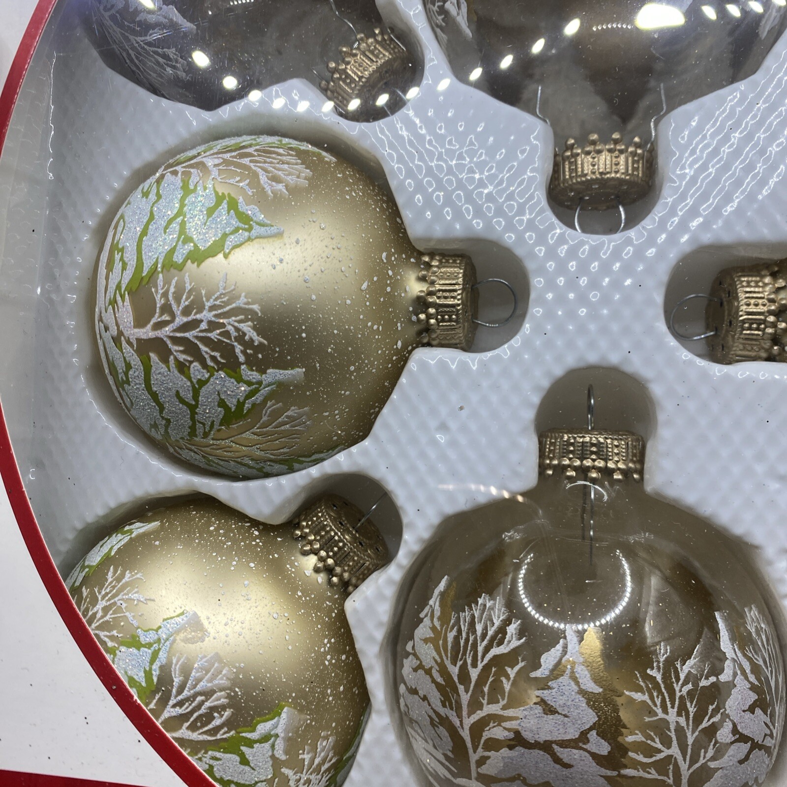 Add a touch of vintage glamour to your holiday decor with this set of 16 sparkling glass ornaments from Celebrate It. The round ornaments feature a beautiful white and gold color scheme with red glitter accents, perfect for adding a pop of color to your Christmas tree. The set includes medium-sized ornaments, each hand-blown with precision and care. These ornaments are not just beautiful but also unique, with a boxing theme and a subject of winter trees. They come in their original packaging and are perfect for collectors or anyone looking to add some vintage sparkle to their holiday decor. Don't miss out on this opportunity to own a piece of holiday history!