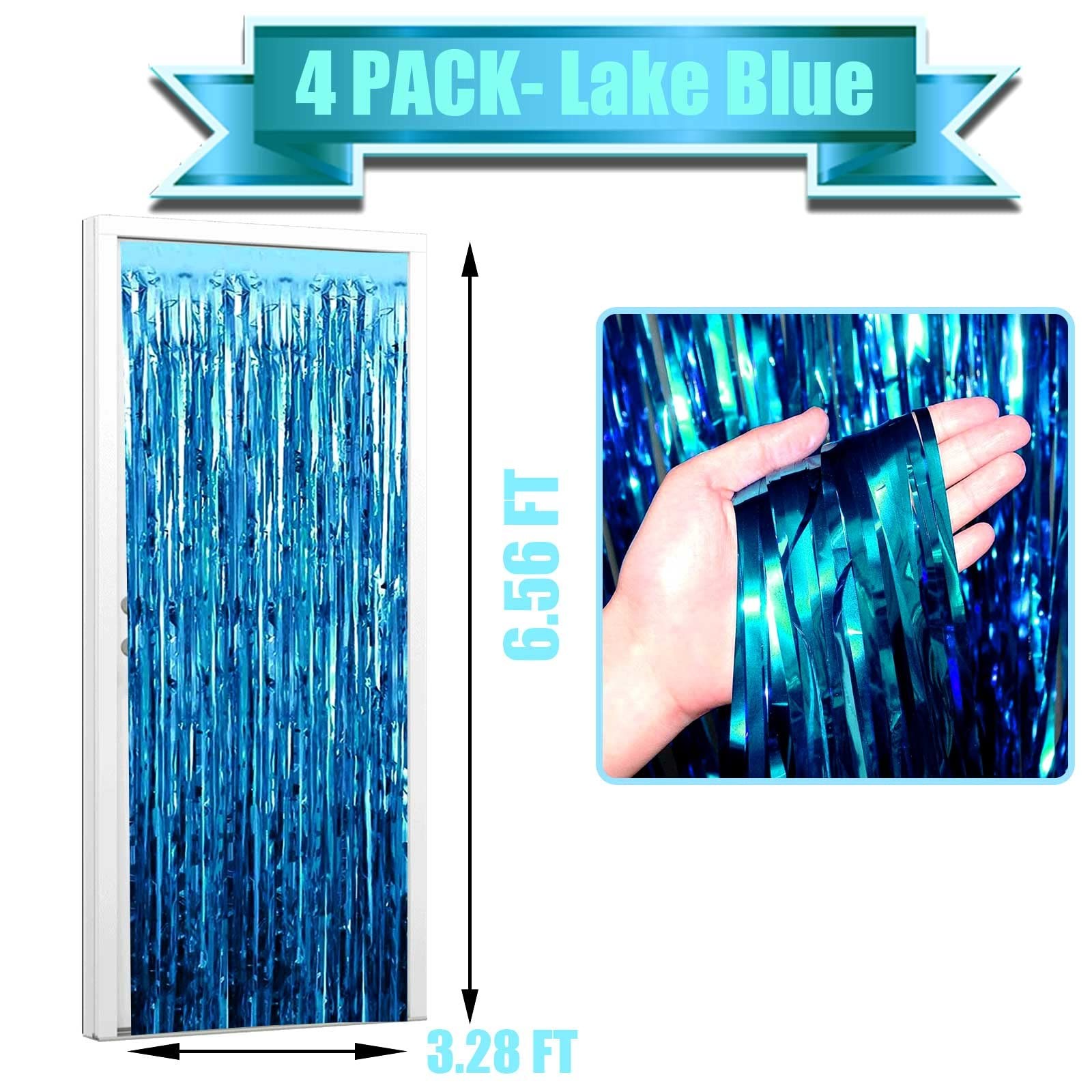 You can DIY put commemorative photos, balloons, banners, LED decorations and various photo props on this backdrop! All the guests who come to bless you will feel your love and beauty! The latest laser sparkle foil curtains: The metallic backdrop curtain made by aluminium foil with laser spangle more shining and beautiful, High quality & not easy fade. The size of each metallic tinsel foil fringe curtain is 3.2 feet wide and 6.56 feet long, Package include 4 pack foil fringe curtains, suitable for hanging on a door or coverage a wall fully. The foil curtains good for party backdrop curtain, place on a wall and serves as a background for photos of any celebrations like: birthday party, theme party, Halloween, Christmas, New Year Eve, bachelorette party, wedding, bridal shower, baby showers, graduations and more. Paste or hang them on a smooth surfaces , It doesn't take a lot of effort to paste them, Just hang them and paste them gently to make it easier to remove them,when the party is over. There is double sided tape already fixed to the back of them. Just peel plastic strip off and hang it up. It sticks Really well, so be aware of what surface you are putting it on. Give your friends and family a “red carpet” entrance as they strut their stuff through the Turquoise doorway and have their photograph taken in front of a sparkling photo booth backdrop - Curtains Put Them Together for an Over-sized Backdrop or Double Them up for Extra Shine - Easy DIY Décor!