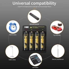 Rechargeable AA Batteries, 4 Pack Double A Lithium Ion Batteries with 4-Bay Charger, Pre-Charged Long Lasting Reuseable AA Batteries Rechargeable aa batteries, 3500mWh long lasting power, 1000+ cycles, 2.5h fast charge. Ideal for high power consuming devices such as Xbox controller, Blink camera, motorized toys, remote controls, smart home devices, microphone, medical devices. Stable Output: These AA lithium batteries have a 1.5V constant output, delivering stronger power and better performance than 1.2v Ni-MH batteries. Ideal for high power consumption devices such as toys, game controllers, cameras, and more. Independent Charging - universal battery charger, you can charge any combination of AA / AAA lithium ion batteries without having to charge the battery in pairs. Safety Protection: double a rechargeable battery has multiple protection. It is equipped with an intelligent protection IC that prevents overcurrent, overvoltage, overcharge, overheating and short circuit. 1000 + Long Cycle Life: rechargeable aa batteries have a relatively low self-discharge rate. With up to 1000+ recharge cycles, they offer advantages in energy conservation and environmental friendliness.