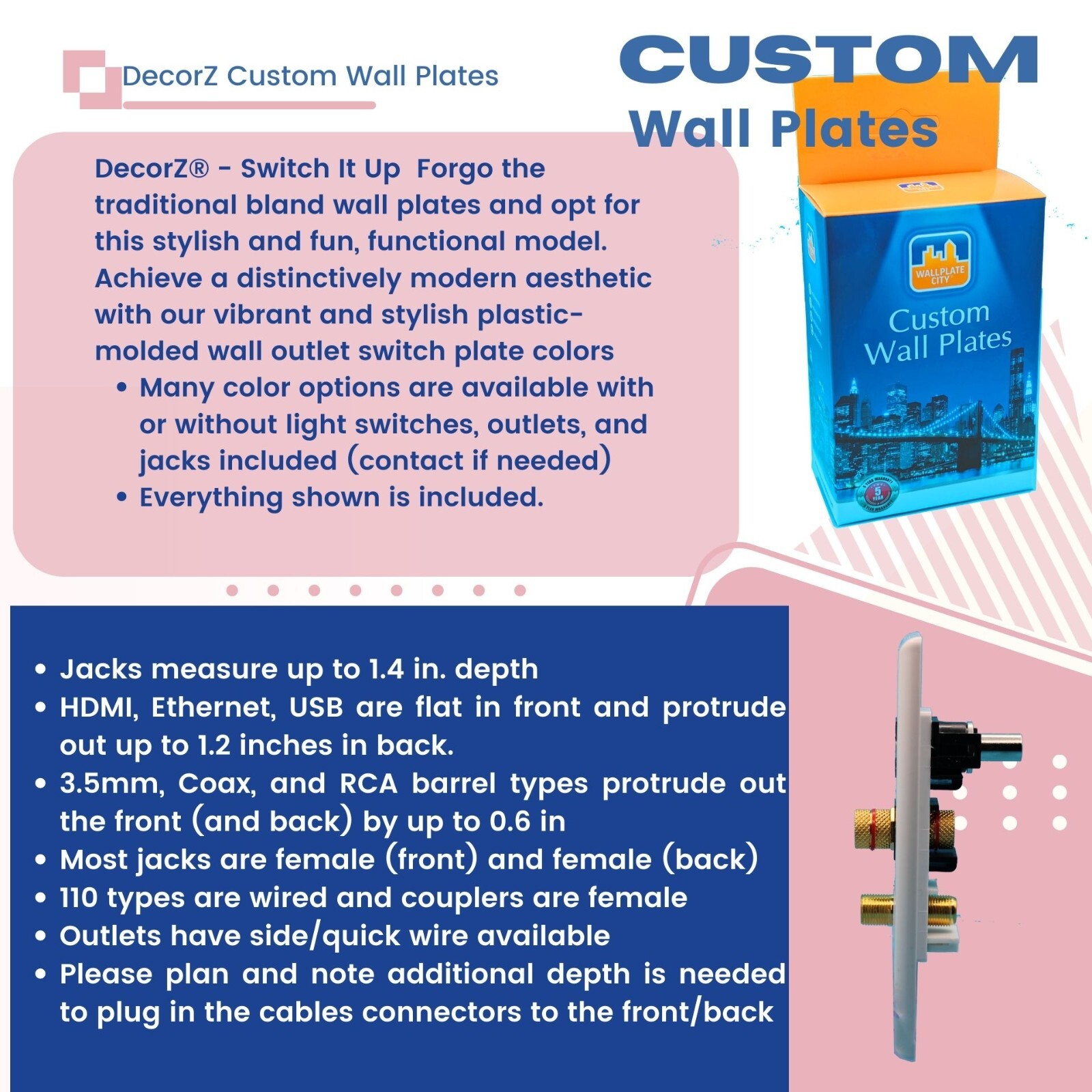 $ 8.74-Port CAT6 Coax Phone Wall Plate with Power Outlet - White