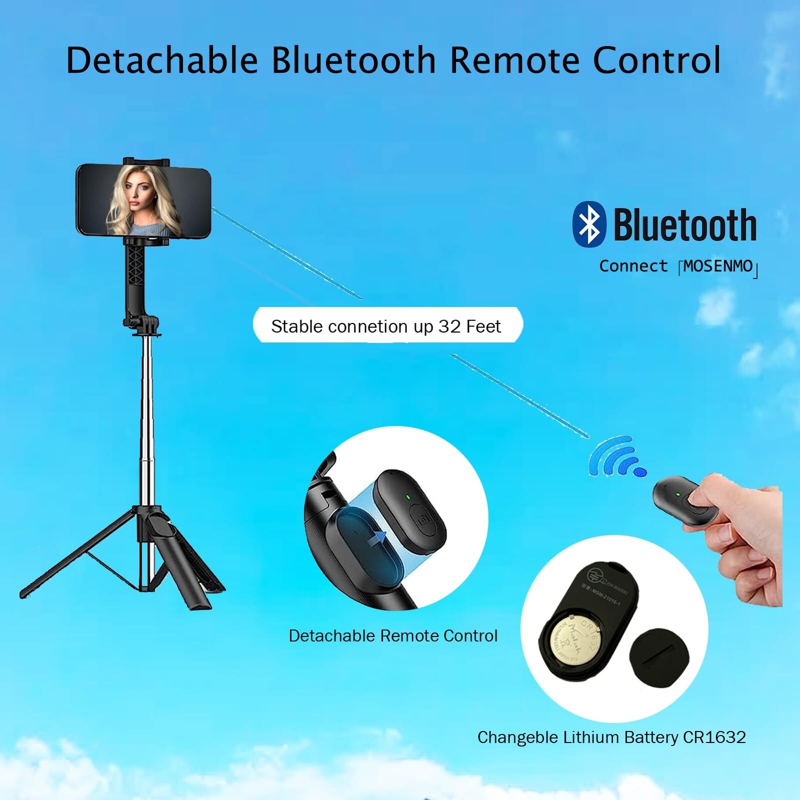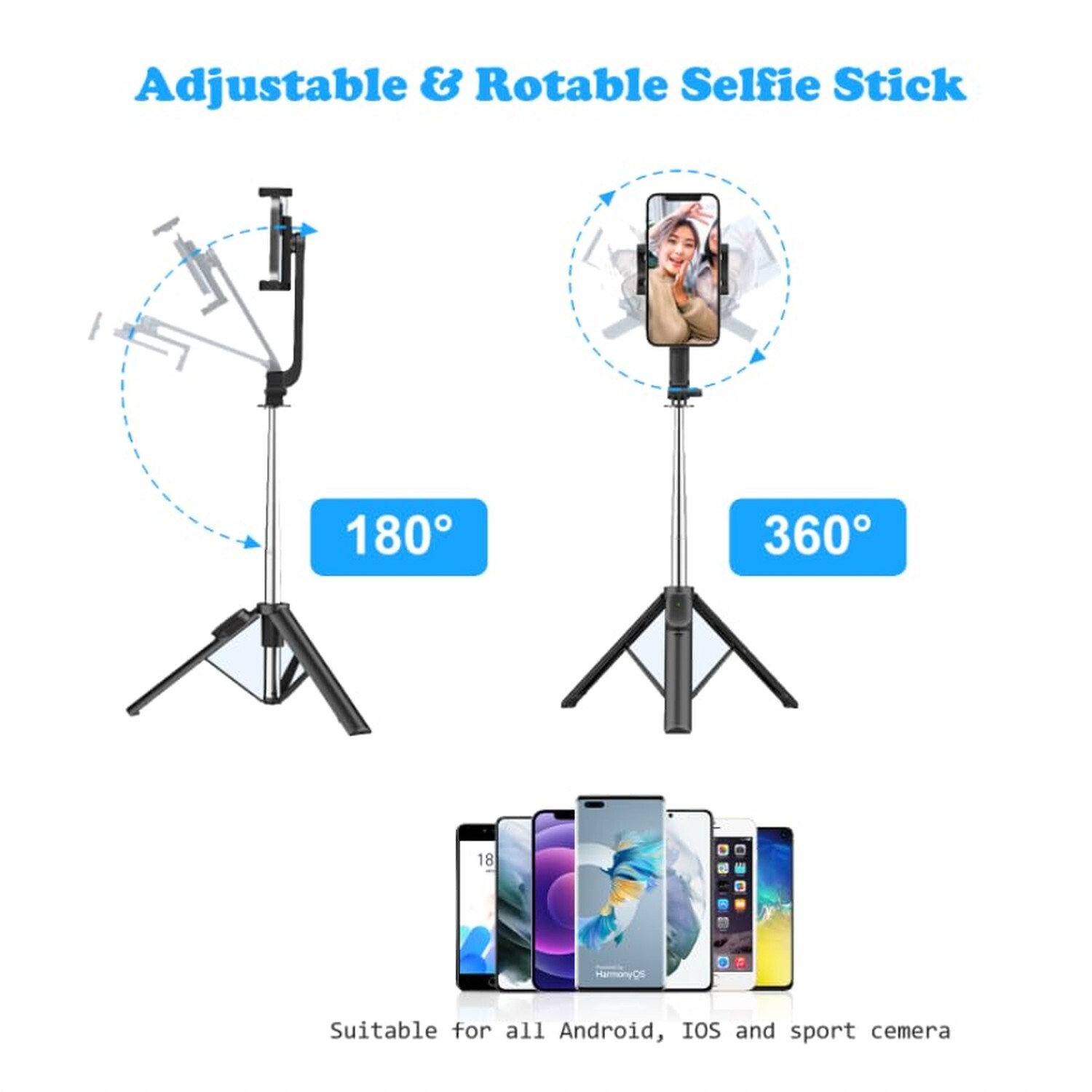 Selfie Stick Tripod with Remote, 40 Inch Phone Tripod All in 1 Stainless Selfie Stick with Wireless Remote & Tripod Stand, Lightweith, Portable, Compatible with All Cellphones Product Details Color: Black-US Brand: Kewlife gift MPN: WS-21016-1 EAN: 5412401420984 UPC: Does not apply Brand: Kewlife gift Color: Black-US Compatible Devices: Smartphone Special Feature: Flexible, Lightweight, Adjustable Material: Stainless Steel, Acrylonitrile Butadiene Styrene (ABS) Item Weight: 0.16 Kilograms Model Name: WS-21016-1 Maximum Height: 1010 Millimeters Tripod Head Type: Fixed Minimum Height: 7.48 Inches Product Dimensions: 1.96 x 1.57 x 7 inches Item Weight: 5.6 ounces Item model number: WS-21016-1 Batteries: 1 C batteries required. (included) Date First Available: March 24, 2023 Manufacturer: Winners'Sun Plastic & Electronic (Shenzhen) Co., Ltd. Country of Origin: China [Adjustable Angle & Rotable Phone Holder] - The Bluetooth Selfie Stick adopts a 180 degree rotatable phone holder design, which supports mobile phone horizontal clips and vertical clamps. The 360 degree enables you to select perfect angle when you take photos. The phone holder supports devices of which the width up to 3.7 inch. [Integrated Innovation Design] - The Selfie Stick and tripod stand integrating together, combined with premium Stainless extendable stick, the selfie stick is extremely stable. [Detatchable Bluetooth Remote & Awesome Battery Life] - The Bluetooth control distance is up to 33 inch, which allows you to take photos by yourself or take group photos by taking off the remote controller. With built-in 120mAh rechargeable and recycling Lithium battery,you can continuously capture 20000 photos [Super Lightweight & Convenient to Carry Around] - Thanks to the hidden retractable design, its only 7.5 inches for folded size and extension max. 39.7 inches. You can put it in pockets or other small bags. Whenver you want to record a beautiful moment, it always be there. [Simple to Use & Universal Fit] - Fast Bluetooth connection with your phone, you can easily use this hand holding selfie stick by pushing the shutter control button. You can use it for a close self-photography or extend it to get a larger scenery. Whats more, you will be using it as a desktop phone holder, doing live internet broadcast, binge-watching TV shows, etc. With a very flexible adjustable view height, the nape ache, shoulder pain will be substantially reduced.
