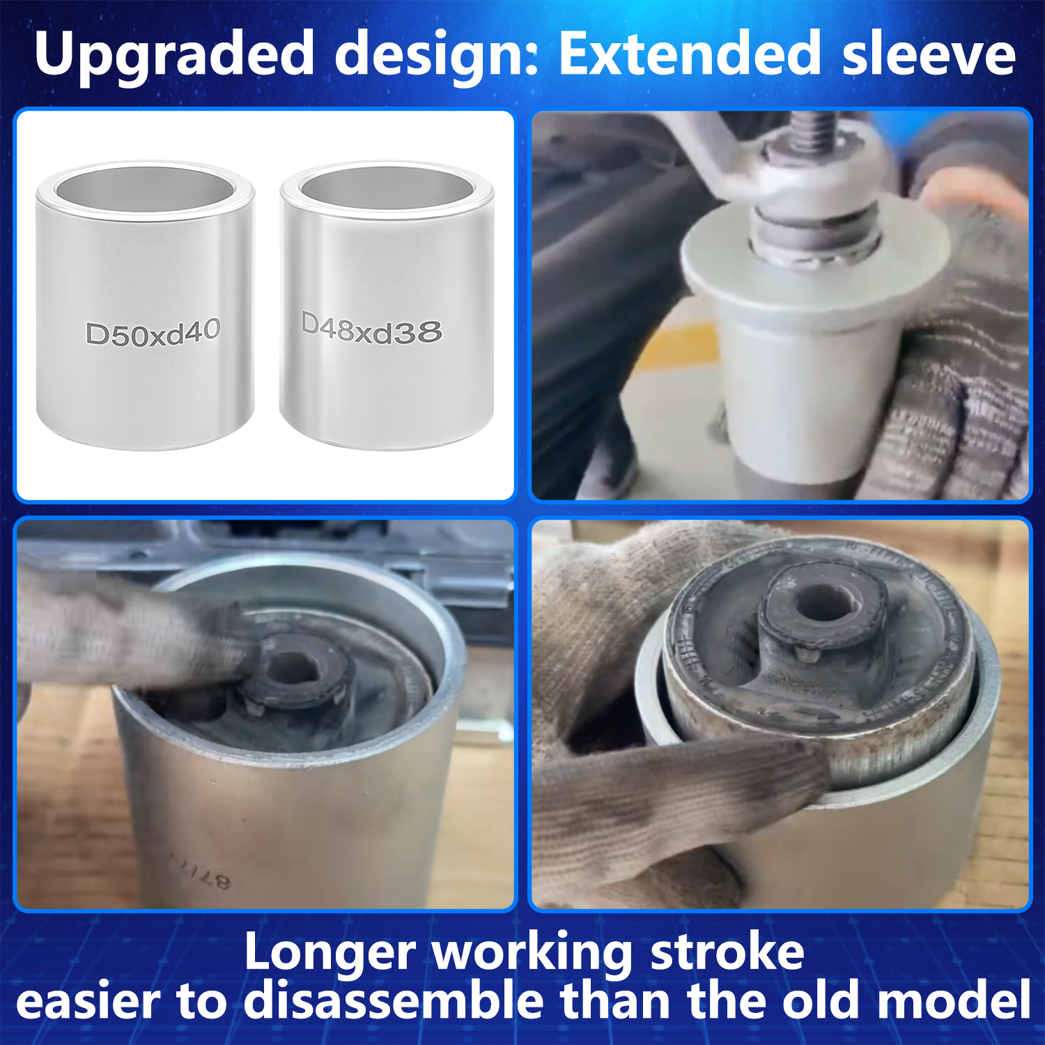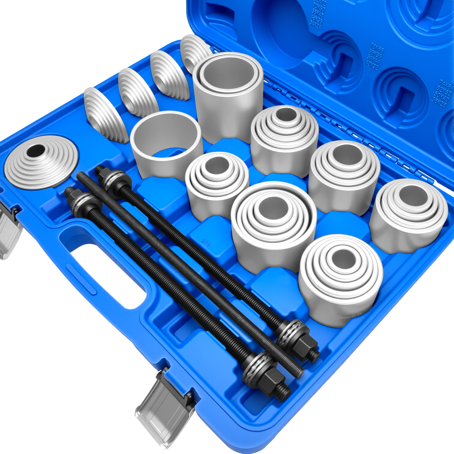【Product Usage】: Quickly and easily Removal and Installation of Bearings, Bushes, Seals and cut down the possibility of damaging the bearing or suspension housings, fits for automobiles and LCVs. 【Products include】:28 x sleeves; 4 x pulling spindle M10, M12, M14, M16; 4x Stop plate discs adapter. 【Outside Diameter/Inside Diameter】32/22、34/24、36/26、38/28、40/30、42/32、44/34、46/36、48/38、50/40, 52/42、54/44、56/46、58/48、60/50、62/52、64/54、66/56、68/58、70/60、72/62、74/64、76/66、78/68、80/70、82/72、87/77、72/62. 【Material】:Forged by Alloy steel, Rugged and durable. Can withstand 3500N. At the same time, it has durability and corrosion resistance. 【Excellent Service: We are committed to providing the best professional tools and the best service for auto repair. If you have any questions, please don't hesitate to contact us. We provide 24-hour before and after-sales service.