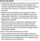 This HDMI cable is a top-quality product made by KabelDirekt, a leading brand in the field of cable manufacturing. With a length of 40ft, it is perfect for connecting your devices from a distance. The cable features A.I.S Shielding that ensures unparalleled signal clarity and minimal interference, resulting in a superior visual and audio experience. This cable is compatible with HDMI connectors and is designed and manufactured in Germany, ensuring the highest quality standards. It is suitable for use in home entertainment systems, gaming setups, and conference rooms. Invest in this high-performance cable for a seamless and reliable connection. HDMI Cable 4K - 40ft - with A.I.S Shielding - Designed in Germany (Supports All HDMI Devices Like PS5, Xbox, Switch - 4K@60Hz, High Speed HDMI Cord with Ethernet, Black) - by CableDirect ١١