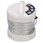 Convenient and versatile pump that can be used where needed to remove water from areas such as boats, pool covers, aquariums, sump pits, and much more Truly portable because it does not use an electrical cord nor need a power source Battery-powered pump can operate for up to 5 hours using three D-sized alkaline batteries Ideal for use in areas and on boats where there is no permanent electrical system or power source Pump is 6 3/8 inches tall, has a 5 ¼-inch diameter, and can pump up to 200 gallons per hour Comes with a 42-inch-long hose with a garden hose adapter that allows addition of a longer hose Lifts water to a height of 40 inches; is not to be used as a permanent bilge pump Portable, battery-operated pump for removing water Pumps up to 200 gallons per hour; lifts water up to 4 feet Three alkaline D batteries last 5 hours Portable, battery-operated pump for removing water Pumps up to 200 gallons per hour; lifts water up to 4 feet Three alkaline D batteries last 5 hours Measures 5.2 x 5.2 x 6.5 inches; weighs less than two pounds Lifts water to height of 4 feet