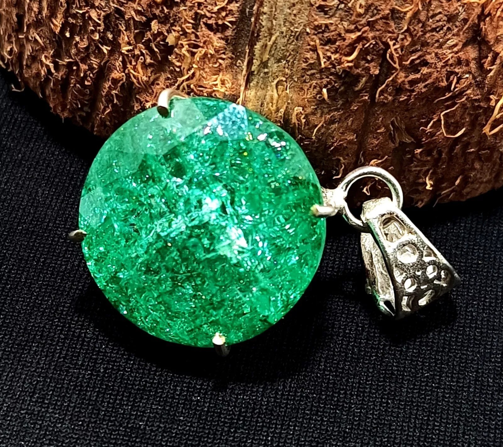 40.95 Ct Certified Emerald Silver Plated Round Locket Pendant Gemstone Jewelry
