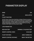 Product Fe ature : GPS pointing fight 4.5" HD remote control screen 5G Real-time image transmission GPS follow surround GPS positioning Optical flow positioning GPS+Optical flow dual mode GPS one key click return GPS intelligent return (o ver distance return, low battery return, runaway return) 360° Laser obstacle avoidance Product Param eters : Body battery: 7.4V 3000mAh lithium battery (rechargeable) Endurance:About 20 minutes charging time: About 150 minutes Remote control signal: 5G digital image transmission