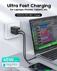 [๐ฐ๐ฑ๐ช ๐จ๐ฆ๐ ๐ ๐๐ฎ๐๐ ๐๐ต๐ฎ๐ฟ๐ด๐ถ๐ป๐ด]: Mini Portability Charger,Fast charging, Foldable plug๏ผSmall size & light weight, unique style design, anti-slip and anti-scratch.It powers up your iPhone 15 up to 71% or Samsung S23 Ultra to 52% in just 30mins, also flies MacBook Air to 41% with 1-hr chargeโyet other 20W gets only 37% [๐ฎ-๐ถ๐ป-๐ญ ๐ฃ๐ผ๐ฟ๐๐ฎ๐ฏ๐ถ๐น๐ถ๐๐ ๐๐ต๐ฎ๐ฟ๐ด๐ฒ๐ฟ]๏ผType C charger Includes 2 USB-C ports,support blind mating and automatic power distribution.it's an ideal charging companion for travel, office use,school,library or simply for home [๐จ๐ป๐ถ๐๐ฒ๐ฟ๐๐ฎ๐น ๐๐ผ๐บ๐ฝ๐ฎ๐๐ถ๐ฏ๐ถ๐น๐ถ๐๐]: Support PD 3.0, QC 4/3.0/2.0, WARP,AFC, SCP, FCP, PPS USB C Fast charging protocols For Lenovo, HP, Acer, Samsung, Steam Deck, MacBook, MacBook Pro, MacBook Air,Laptop,phone,Switch,tablets, and 1000+ more Type C power devices(45W/ 30W/ 29W/ 18W/ 15W etc) [๐๐ฑ๐๐ฎ๐ป๐ฐ๐ฒ๐ฑ ๐๐ฎ๐ก ๐๐๐ ๐ง๐ฒ๐ฐ๐ต๐ป๐ผ๐น๐ผ๐ด๐]: Gan charger intelligent chip provides over-charge, over-discharge, and over-current protection,60% smaller than the original while still effectively protecting battery life [๐ช๐ต๐ฎ๐ ๐ฐ๐ฎ๐ป ๐๐ผ๐ ๐ด๐ฒ๐]๏ผ45W USB C Charging block,Unconditional 60-day refund and 12-month warranty,Even if your refund window is closed after 30 days, you can still contact our seller store on the right corner and ask any questions about the product. We are always happy to help