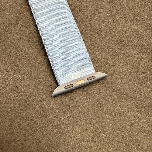 Apple Watch BAND [45mm] Winter Blue Sport Loop One Size Apple Watch [45mm] Winter Blue Sport Loop One Size Apple Watch band is in good condition - watch band only Features CARBON NEUTRAL — An aluminum Apple Watch Series 9 paired with the latest Sport Loop is carbon neutral. Learn more about Apple’s commitment to the environment at apple.com/2030.,WHY APPLE WATCH SERIES 9 — Your essential companion for a healthy life is now even more powerful. The S9 chip enables a superbright display and a magical new way to quickly and easily interact with your Apple Watch without touching the screen. Advanced health, safety, and activity features provide powerful insights and help when you need it. And redesigned apps in watchOS give you more information at a glance.,ADVANCED HEALTH FEATURES — Take an ECG anytime. Get notifications if you have an irregular heart rhythm. See how much time you spent in REM, Core, or Deep sleep with sleep stages. Temperature sensing provides insights into overall wellbeing and cycle tracking. And take note of your state of mind to help build emotional awareness and resilience.,A POWERFUL FITNESS PARTNER — The Workout app gives you a range of ways to train plus advanced metrics for more insights about your workout performance. And Apple Watch comes with three months of Apple Fitness+ free.,INNOVATIVE SAFETY FEATURES — Fall Detection and Crash Detection can connect you with emergency services in the event of a hard fall or a severe car crash. And Emergency SOS lets you call for help with the press of a button.,SIMPLY COMPATIBLE — It works seamlessly with your Apple devices and services. Unlock your Mac automatically. Get approximate distance and directions to your iPhone with Precision Finding on supported iPhone models. Pay and send money with Apple Pay. Apple Watch requires iPhone XS or later with the latest iOS version.,EASILY CUSTOMIZABLE — With watch bands in a range of styles, materials, and colors and fully customizable watch faces, you can change your watch to fit your mood or the moment.,INCREDIBLE DURABILITY — Tougher than tough. It’s crack resistant, IP6X-certified dust resistant, and swimproof with 50m water resistance.,STAY CONNECTED — Send a text, take a call, listen to music and podcasts, use Siri, and get notifications on the go. Apple Watch Series 9 (GPS) works with your iPhone or Wi-Fi to keep you connected.,LEGAL DISCLAIMERS — This is a summary of the main product features. See below to learn more. Details * Product Dimensions: 9.53 x 3.07 x 1.3 inches * Item Weight: 0.57 pounds * Shipping Weight: 0.57 pounds * Manufacturer: Apple * Item color: Winter Blue Sport Loop * Item model number: MR9F3LW/A * Item MPN: MR9F3LW/A * Item part number: B0CSV6LV26 Fast and Free Shipping You're already purchasing the item. Why pay additional for shipping, especially slow shipping? We get your order shipped out within 1-business day and delivered to your doorstep as quickly as possible. Competitive Pricing With our dynamic pricing model, our prices are always competitive. Our prices are some of the lowest that you will find on the internet. Rest assured that you're getting a good deal when purchasing with us. 30-day Money Back Guarantee We are committed to making sure that you leave this transaction satisfied. If you're unhappy with the product for any reason, you may return it back for your money-back or a replacement within 30 days. No questions asked!