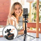48" Tripod Set for Phone Camera, and Tablet Holder for iPad Pro 13'' - Black Product Details Brand: KraftGeek Color: Black Compatible Devices: Tablet, Camera, Smartphone Special Feature: Portable, Lightweight, Adjustable Material: Aluminum Weight Limit: 4 Pounds Maximum Height: 48 Inches Tripod Head Type: Standard Mount Minimum Height: 10.2 Inches Number of leg sections: 1 Item model number: 38545905-fcdf-49cc-8356-90507c6b489b Date First Available: June 6, 2024 Manufacturer: KraftGeek Versatile Compatibility: This all-in-one vlogging tripod set is designed to securely hold smartphones, cameras, and tablets, making it an ideal choice for photography, videography, and content creation. Vlogging Tripod with Adjustable Height: Equipped with an extendable aluminium alloy rod, this selfie stick tripod offers the flexibility to adjust its height from 10.2 inches to 48 inches to suit your shooting needs, whether you're exploring outdoor landscapes or shooting in a studio environment. Vlogging Tripod with Universal 1/4 Screw: This tripod stand for video recording is also compatible with cameras, digital cameras, camcorders, lights, microphones and other accessories with a standard 1/4'' screw, maximum load capacity up to 4.4lb, ideal for travel photography with the camera tripod. Wide Device Compatibility: Compatible with a wide range of cell phones and tablets, with a width range of 3.54-8.46'' and support for devices sized 4.7-13'', including iPad Pro, iPad Air, iPad Mini, Samsung Galaxy Tab, Lenovo Tab, iPhone 15 Pro/14/13,iPhone Mini, and Galaxy S24 Ultra. Complete Kit: Includes a selfie tripod, phone mount and tablet tripod mount, providing you with everything you need to start capturing stunning photos and videos right out of the box