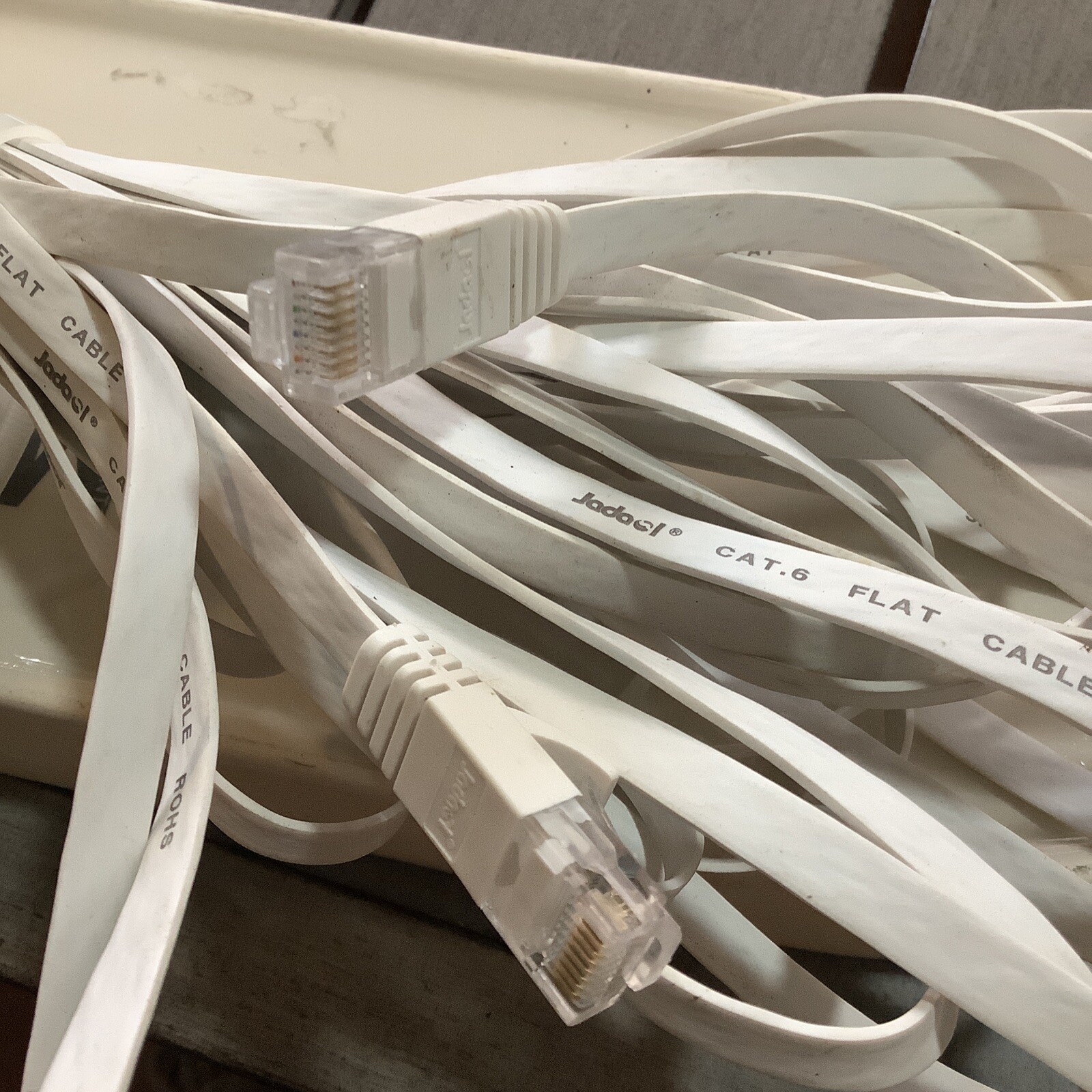 Jadaol Cat 6 Ethernet Cable 48 ft Flat Internet Network Patch Cable-White-ROHS.no original box. Bcc2
