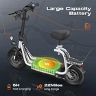 Product Description About this item 【48V Battery and Peak 1200W Powerful Motor】The electric scooter for adults is equipped with a 48V/10.4Ah battery, which can last for a long time without frequent charging, with a maximum range of up to 30 miles and a maximum speed of 20mph, and it only takes 7 hours to fully charge. The motor has a peak power of up to 1200W and can easily climb a 30-degree slope, making it very suitable for short-distance commuting 【LED Display and 3 Speed Modes】The electric scooter adults is equipped with an LED high-definition display, which can clearly display: speed mode, battery power, current speed, and mileage during the day and at night. The caroma scooter uses a half-turn handlebar design, getting rid of the traditional full-grip speed control mode to ensure riding safety; the scooter has 3 different speeds for you to choose, giving you a better riding experience 【Excellent shock-proof suspension and brake system】This electric scooter with seat for adults has an excellent shock absorption system composed of headlights and taillights, electronic horns, front forks and sensitive double disc brakes, which can brake quickly, safely and stably; durable one-piece wheels and thick steel frame can withstand high-intensity pressure, with a maximum load-bearing weight of 265 pounds, suitable for heights of 3'11"-5'11" 【 Foldable Electric Scooter with Seat】Caroma electric scooter is equipped with an 8.27-inch wide deck, a soft seat that can be adjusted according to different heights, and a storage basket on the back seat; the front of the vehicle is compact and foldable, making it easy to store in a car trunk or other small space 【Caroma Electric Scooter After-Sales Support】Caroma electric scooter with Seat is UL 2272 certified. This detachable electric scooter is 90% assembled and comes with instructions and installation tools, making installation very easy. If you encounter any problems, such as motor failure, charging problems, or missing accessories, please contact us in time