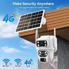 【2-in-1 Dual Lens and Dual Screen, 360° View】The outdoor cellular security camera features a dual-lens system (one fixed, one rotating) that provides a comprehensive 360-degree view. The dual-screen display offers intuitive monitoring from every angle, greatly enhancing surveillance efficiency.❗️Important: This camera does not support Wi-Fi connections and requires the purchase of a 4G cellular data plan for operation. 【No WiFi Needed 4G LTE Connection】This outdoor security camera operates entirely on 4G LTE, eliminating the need for WiFi or power outlets. It's perfect for remote locations such as country homes, construction sites, or areas without reliable WiFi. The included SIM card supports major carriers like T-Mobile, AT&T, and Verizon. Enjoy flexible data plans with options starting at $14.99/month, $39.99/quarter, or $149.99/year. Plus, get a 7-day free trial to experience the service before committing. Note: A data plan is required for continued operation after the free trial period. 【5MP Full HD Dual Lens + 10x Optical Zoom】Delivers 5MP (5MP+5MP) full HD images with 10x optical zoom, ensuring every corner is clearly visible. Equipped with white light and infrared LEDs, it offers three night vision modes (full color, infrared, smart) and automatically activates the lights in low-light conditions, with night vision up to 35 feet. 【Smart PIR Motion Detection & Instant Alerts】Advanced AI technology analyzes the shapes of people and vehicles for accurate detection, significantly reducing false alarms triggered by minor movements. Receive instant alerts on your device to stay informed of any activity at all times. 【SD Storage & 4G Data Plan】Supports Micro SD cards (up to 128GB, not included)We offer flexible data plans for this outdoor wireless security camera: $17.99 per month or $179.99 per year, ensuring your surveillance data is always accessible and cost-effective.