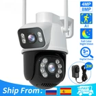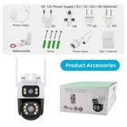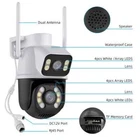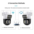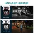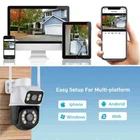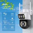 Dual-Lens with Dual Screen Auto Tracking PTZ WIFI Camera Dual lens, Dual screen, Notifications alarm, humanoid tracking, two way voice intercom 360 monitoring, full color night vision, IP66 waterproof, mobile phone remote monitoring,Share video, SD card storage, 24 hours video recording. Packing List: 1x PTZ Camera 1x User Manual 1x Power Supply 1x Screws Bag 4MP 8MP comparison 4MP camera version: Means that the single lens is 2MP, so the dual-lens is 2MP+2MP=4MP. 8MP camera version: Means that the single lens is 4MP, so the dual-lens is 4MP+4MP=8MP. 270° Pan & 90° Tilt Rotate Due to the horizontal 270° and the vertical 90 °, you can remotely control the wifi outdoor camera to view every corner via your mobile phone. Dual Lens and Dual Screen There are 2 video screens in APP, the upper one is fixed position camera and the lower one is PTZ camera. AI Auto Tracking When someone passes through the protected area, the camera will detect the person's movement and follow the person. Real Two Way Audio Built in microphone and speaker,support real time video,which allows you talk with your visitor in real time wherever you are. Smart Night Vision Built -in White LED and IR LED, you can choose color night vision or infrared black and white night vision. IP66 Waterproof / Dustproof The camera is equipped with IP66 case , which is waterproof, sun-proof and dust-proof. It is suitable for any environment. AI Human Detection Alerts Quickly finds human targets and immediately sends App notifications to your phone so you can see what's happening anywhere. Support TF Card Storage and Cloud Storage(Need Pay For) The camera supports up to 128GB TF card local backup and also provides cloud storage service(Need to pay extra cost). 2.4Ghz Wifi Connection & LAN Connection Powered by DC12V adapter, you can connect the camera to Wi-Fi network. you can setup wifi connection of the camera or LAN Search with network cable connected to router, work with 2.4G wifi only (Does not support 5G). ICSEE App Remote Access You can get a live broadcast of the capture video anytime, anywhere. Supporting Multiple Users watching live video at the same time via phone APP.