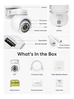 【The Ultimate 4K at Every Angle】 Panning the camera up to 350° and tilting up to 90° to cover corners you concern in 8MP high resolution. The field of view is even wider thanks to the 2.8mm lens and the image perfectly fits the 16:9 aspect ratio on your monitor. 【Auto Detecting and Tracking】 The pan tilt camera is equipped with advanced features like precise detection of humans and vehicles, automatic tracking, and capturing facial snapshots, making it serve as a reliable security guard for residential and commercial properties. (Compatible with N98PBD/N96PBK to enable the mentioned functions.) 【Details Polished for Utmost Convenience】 The built-in microphone allows real-time 2-way talk to express gratitude to delivery personnel or deter unwanted visitors. Its small yet stiff design ensures easy installation on walls or under roofs. 【Colorize the Night to See Clearer】 Featuring 8 premium LEDs, this security camera offers you to switch between a 33ft full-color night vision and a 72ft infrared night vision. IP66 weatherproof enables it boasts against harsh weather. Power it by PoE or DC 12V both work. 【High Compatibility Makes Storage A Breeze】 The camera comes with H.264 and has the capability of dual streaming. It supports storage of up to 256GB microSD card or third-party storage. Additionally, provides a dedicated support team for their professional products.