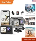 4K Action Camera Touchscreen - Dual Screen Ultra HD EIS WiFi Sports Camera,40M Waterproof Camera 170°Wide Angle Vlog Camera 20MP Underwater Camcorder with Remote Control and 2 Batteries Touchscreen Dual Action Camera: You can be your own daredevil and your own photographer with action 2 inch IPS touch screen shows everything clearly and brightly, easy to change settings, switch shooting modes, you also can change framing and monitoring views between back and front. 4K Action Cameras with MIC: professional 4K Ultra HD action camera records 4K/30fps video and takes 20MP photos video camera is the best way to share your adventures with your friends and the wifi camera also supports an external micro which helps you to capture sound from all directions with crisp details. 131FT Waterproof Camera & Remote Control: underwater camera isn’t waterproof by itself, but it does come with an included waterproof case, which will let you use it down to 131 feet / 40 metres underwater. No need to worry about camera damage when you do water sports such as swimming, diving, surfing and so on. The action cam comes with a remote control CAPTURE MOMENT WITH ONE CLICK. EIS Stabilizer & Adjustable View Angle: You do not need to pan around and scan the entire horizon like you would with a traditional camera, now you just need to press one button! The action camera will take a beautiful 170-degree panorama photo without any sort of doing strenuous activity, the video is still silky smooth, and it's easy to capture the dynamic and wonderful moments of the activity. Multi-Function Sports Camera: This is a multi-function action camera including loop recording, slow motion photography, driving mode, image flipping, time-lapse photo, exposure adjustment, white balance adjustment. Free Accessories: What we really like about camera is that it comes with pretty much everything you need to get going. The package includes 2 batteries, a battery charger, the waterproof case, a wide variety of attachments and tethers, and a remote control. After-Sales Service: provides AFTER-SALES SERVICE. If you have any questions or requests, please feel free to contact me at the after-sales . 4K Dual Screen Touchscreen Action Camera with Remote Control Package contents Action Cam includes 2 batteries, a charger, a waterproof case, a wide range of attachments and chains, and a remote control. Multifunctional sports camera: Such as time-lapse, slow motion, self-timer, burst photos, white balance, etc. This 4K action camera can also be used as a trip recorder in your car. Capture the beautiful landscapes of your trip. Dual Screen:2"TOUCH Front Screen Viewing angle: 170° FOV Image resolution: 20 MP maximum video resolution: 4K / 30fps, / 30fps, 1080P / 60fps (more coming soon) Video codec: Electronic image stabilization (EIS): supported Connectors: Micro USB, HDMI, External micro: supported (external micro included) Memory: supports up to 64GB (SD card not included) WiFi: WiFi