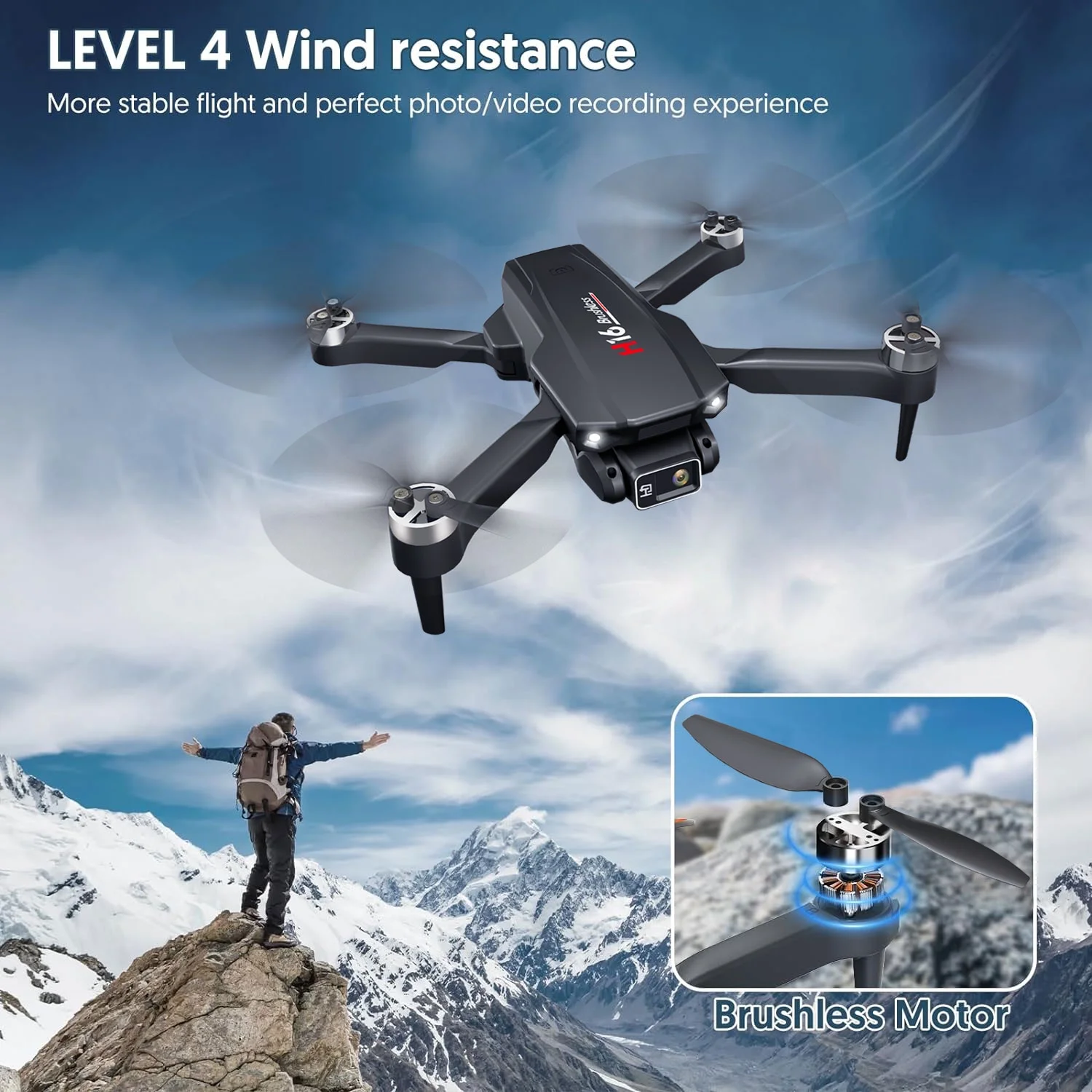 Kid Odyssey H16 is an adult drone with a 4K HD camera and brushless motor, perfect for beginners. It is foldable and equipped with brushless motors, optical flow positioning. With two batteries, it can fly for up to 16 minutes. The drone also boasts a 4K HD camera with a 90° adjustable angle and a 120° FOV lens. It supports functions like follow me mode, circle fly, waypoints, gravity control, headless mode, and auto hover. With a 2.4G FPV transmission and a range of 656ft, this drone offers a unique gift experience for Christmas and other meaningful holidays. 【4K Camera Drone】Kid Odyssey H16 Drone with 4K camera for adults with 120° wide-angle and 90° adjustable provides a high resolution picture, hovering system and optical flow positioning technology ensure drone flight and taking pictures are more stable, bringing a stunning aerial photography experience. Gesture recognition and MV support, you can create as you want and sharing with friends on social media without effort. 【Configuration Upgrade】Built-in brushless motor for higher efficiency, lower noise and resistance to level 4 wind. Drone with camera for adults can meet a variety of flight environments, such as high mountains or seaside. 2 module batteries for extra long flight time! 【Multiple Functions Fit Your Need】One-key take off/landing, Headless mode, 3D flip, Flew sideways, Flying along a trajectory, Low battery warning, Emergency stop, 3 adjustable speeds meet any flight needs of you. All its functions and great quality make it not only suitable for beginners, but also skilled players. 【Remote Control and App】After connecting the drone WiFi with the phone, you can control the fpv drone through the APP on the mobile phone. The foldable design and well-fitted carrying case make it easy to take the drone with camera outdoor, and weight under 250g. 【After Sales & Helpful Tips】If the mini drone/remote control/APP has any issue during use, please contact us freely. When the controllable range is beyond the control range, the remote control drone will slow landing. No need to worry about losing the drone.