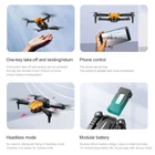 Describe: Product configuration parameters: 1080P single camera/single camera 4K/dual camera 4K Remote control frequency/number of channels: 2.4G/4 channels Product material: plastic/metal/electronic components Adjust the camera: manual 90° adjustment Product color: black/black orange Motor model: 720 motor Remote control mobile phone holder size: (support the largest mobile phone size) 5.5 inches Remote control battery: 3 AAA batteries (bring your own) Flight time: about 15 minutes Body module lithium battery: 3.7V 800 mA Remote control distance (no interference, obstacle-free): about 150 meters Charging method: USB cable Charging time: 60 minutes Body size/folding: folded size 6*9*4.5cm unfolded size 17*16*4.5cm Packing size: 17*16*4.5cm Obstacle avoidance function: UAV comes with obstacle avoidance function (trilateral infrared obstacle avoidance). The fuselage can perceive obstacles around 360°, avoid obstacles, and reduce flying around obstacles caused by operation problems. Damage, realize automatic obstacle avoidance Image transmission signal: WIFI image transmission Image return distance (no interference, no occlusion): 50-80M Total product weight: 0.293 kg Feature: -With folding arms, it is small in size and easy to carry. -With high hold mode function, provide stable flight. -With wifi function, it can be connected to APP and APK system, and take pictures, video, and transfer pictures in real time through the phone camera. -With orbital flight mode. You can choose the route you need. -Take pictures with gestures. Mv music editing function. -There are 2 cameras to choose from. Equipped with a 1080P/4K wide-angle camera, which can shoot a variety of high-definition pictures and videos. -Headless mode, no need to change the position of the aircraft before flying. -Anti-interference adopts 2.4GHz technology. -4 channels, you can increase, decrease, forward, backward, left-hand, right-hand and 360° scrolling. Remote control function: One-key take-off/one-key landing/up/down/left/right/360°rolling/headless mode/fast and slow gear/one-key reset/fine direction adjustment Aerial photography APP function: One-key take-off/one-key landing/up/down/left/right/360°rolling/headless mode/fast/slow gear/photograph/video/switch dual cameras/face recognition automatic photography/gravity sensor/tracking flight Include: 1X aircraft 1X remote control 1X body battery 4X protection frame 4X spare blades 1X screwdriver 1X charging cable 1X storage bag