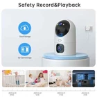 • Dual Lens : The camera has two lenses that provide a wider field of view and better depth perception, ensuring clear and detailed footage. • Auto Tracking : The camera's tracking feature automatically follows any movement within its range, making it an efficient surveillance tool. • Color Night Vision : The camera's color night vision feature allows for clear footage in low-light conditions, ensuring that you never miss a thing. • High Definition : With a resolution of 3.0 megapixels, the camera provides high-quality footage that is both sharp and detailed. Home Surveillance Camera 5G WiFi IP Camera Dual Lens Dual Screen Auto Tracking Color Night Vision Baby Monitor Package List Dual Lens Camera*1 User Mannual*1 Rotating Bracket*1 Power Adapter * 1 Screws*1 Dual Lens& Dual Screen this Dual Lens have high resolution and refers to 3MP+3MP pixel lens.top lens is ptz len, which can be rotated up, down, left, and right and played in real time.bottom lens is a fixed shot of the monitoring screen of the corresponding area. One screen can watch the real-time images of 2 lenses at the same time. Dual-band WiFi Connection this camera work with cam720 app only.you just need download cam720 app from Goole play or Apple Store, and connect camera by 2.4ghz or 5ghz wifi. Two-Way Audio Built-in microphone and speaker,bring you real-time two-way audio. No matter how far away,you can use it to talk with your family remotely anytime. On Touch Calling when the child pressing the button on the camera,you can talk with the child by the app at any time. Motion Dection After detect the target, the camera will adjust the top lens automatically, Tracking Moving Objects, Cars, Pets, humans, and push alert notifications to your Smartphone,make sure you are always the first one to get informed when things happen. PTZ Remote Control&Fixed-Point Cruise Top lens:355°Horizontal,90°Vertical Rotation,you could monitoring anywhere you want.and ou can set multiple preset points in the app and use cruise monitoring to monitor every corner of your home. Color Night Vision Built-in 2Pcs White LED and 12Pcs IR LED . Monitor moving objects, automatically illuminate.This is an impressive little weapon against crime . Camera could show colorful vision at night too , there are three night modes for you to select . P2P Remote Access&Multi-System this camera support Android iPhone IOS Smart Mobile Phone.when you want to remotely monitor the camera,please first add the camera to the app through WiFi and open the app to access mobile network data and location functions before remotely monitoring the device. Remote APP Name:cam720 APP Multi-users Viewing you could share access to live streaming and video recordings with those who care, up to five people can be invited. SD Card & Cloud Storage Free 30-day cloud storage and Max 128G SD card Record ,data security is more stable . If you want to keep using Cloud Service, you just need to pay for it , if you don't need to use , it will stop it automatically when you don't pay for the fee. Multi-environment installation There is an installation bracket in the package that you can install on the ceiling, wall, or desktop.you could monitor anywhere in your home.