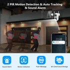 【4K HD Image & Color Night Vision】Outdoor solar security camera gives you 4K (3840 x 2160) Full HD, 8MP images and videos, sharper than other 2K or 1080P security cameras,You can Choose from 3 night vision modes. This outdoor camera was built-in CMOS sensor and IR lamp automatically detect ambient light and switch to color night vision mode for sharper detail and color images, even up to 65 feet of darkness. 【Dual Lens & 360°Coverage】This wireless outdoor wifi camera is equipped with two lens that support 360° horizontal and vertical 90° PTZ rotation, providing you with 360° full protection with few blind spots. You can also manually rotate the security camera to see in different directions and remotely monitor any corner via the app to protect your belongings and family! 【5GHz & 2.4Ghz WiFi & Solar/Battery Powered】solar security cameras wireless outdoor supports both 5GHz & 2.4Ghz Wi-Fi connection . With the solar panel, just connect the camera to the solar panel for continuous power supply. Built-in high-capacity battery allows continuous power supply through the battery even in bad weather or low sunlight, providing uninterrupted protection for your home for 365 days. 【2 PIR Motion Detection & Auto Tracking】Built-in sensitive PIR motion sensor effectively distinguishes human from other things and reduces false alarms. Once any abnormality occurs in the monitored area, you can receive a real-time push on your mobile phone. The solar camera outdoor wireless automatically tracks the movement of intruders and activates the alarm sound and spotlight to deter unwanted visitors.Support custom detection areas, only focus on key areas. 【2 Way Talk & IP66 Waterproof】With the latest IP66 waterproof rating, the outdoor camera can be used in extreme weather with a temperature range of (-4°F~122°F) without worrying about extreme cold and heat. In addition, solar camera also supports multi-user connection and multi-person sharing, just share the sharing QR code to your family and friends, then you can realize multi-person sharing to protect your home together.