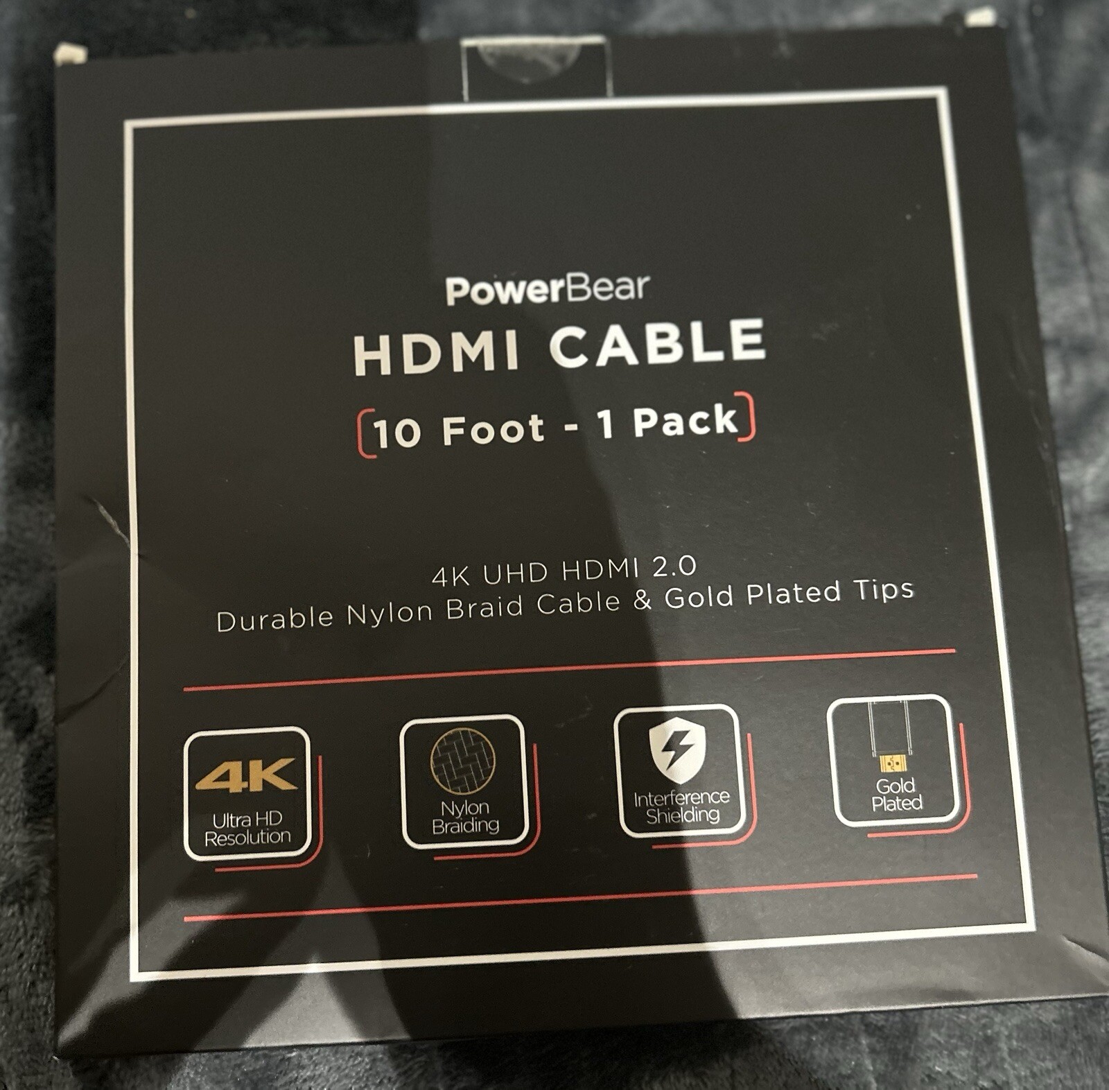 The PowerBear HDMI Cable is 10ft long with HDMI 2.0 connectors, providing 4K quality. It features gold-plated connectors for enhanced durability and performance. This universal cable is suitable for TV, video, and audio accessories, ensuring a reliable connection for your entertainment needs.