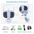 4K WIFI Security Camera Outdoor Fixed 180° Wide Angle Panorama Cam Video Waterproof Surveillance 6MP Dual Lens Camera Mini CCTV Features: * 8MP 4K(4608X1440) HD resolution/The image is clear and delicate. * Dual-lens horizontal 180°wide-angle monitoring field of view/16:5 screen. * Support real time picture-in-picture /Wide angle view overall, real-time view details. * Support wired or wireless network connection/With RJ45 connector for fast network connection. * 6 dot matrix infrared light and 6 dot matrix floodlight light/infrared night vision 30 meters, floodlight full color 20 meters. * Perfect two-way audio effects/echo cancellation and noise suppression technology. * Unique 2D&3D picture noise reduction technology/digital wide dynamic. * Support infrared and full color night vision/Clear view even at night. * IP66 waterproof/ Good operation in -20 ℃ and+50 ℃ Environment. * Lightning protection / prevent circuit overload, effective protection of the camera to work properly in thunderstorms. * AI Humanoid Motion Detection/Intelligent Human Body Detection and provides tags. * Support 2.4G WIFI/ 3dBi antenna, wireless transmission 30 meters. * H.264 compression format / real-time monitoring and HD video. * Support Micro SD card / Max 128G store more data and content. * Support multi-user viewing/sharing with family. * APP: IPC360 Home/Free APP upgrade and technical support. 8MP 4K HD resolution 6MP option is two lens: 3MP lens+3MP lens 8MP option is two lens: 4MP lens+4MP lens 180° Ultra Wide Angle * Compared with other cameras, binocular cameras have a wider field of view, it can see 180 ° field of view, see more widely, suitable for installation in the street or plant and other wide areas. Intelligent splicing screen * Shot by two lenses, automatically combined into one picture, providing a complete 180° wide angle view of the picture and video, without distortion or tearing of the picture. Outstanding night vision performance * 6 dot matrix infrared light and 6 dot matrix floodlight light,infrared night vision 30 meters, floodlight full color 20 meters. Motion Detetion * This security analyzes visitor's body shape and identify human or animal or static object immediately. This smart home camera will capture the human's abnormal movements *Push exception information for you through APP. Product DetailsOne camera replaces two cameras * Ave more than half of all costs, save time and costs. Smooth Two-way Audio * This security camera can easily realize real-time intercom, so that you can communicate with the person opposite the webcam without obstacles. IP66 Waterproof and lightning-proof * IP66 waterproof, which can meet most use scenarios, and there is no need to worry about camera damage caused by rain and snow. *Anti-overload chip, effective prevention of voltage overload caused by lightning strikes, after many bad weather experiments. Micro SD Card & Play Back * Built-in SD card slot, thie video surveillance camera support up to 128g Micro SD card (SD card not includeed) *The PTZ camera also supports encrypted secured cloud storage, protects recording in cloud against any footage loss result from damage such as theft of the security camera. Support wired/wireless connection * With RJ45 connector, you can directly connect your network cable; also can be connected wirelessly through 2.4G wifi. Support Gourp Sharing * You can share the cctv account with family members. it is interesting to share good scenes with family members and friends in real time, multiple users function can fulfill your wish. Suitable for Multiple Scenarios Product Details