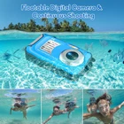 ♥ 2.8'' TFT Screen & Self-Timer: With a 2.8-inch TFT screen, this waterproof camera makes it easy to use features like timer shooting and continuous shooting. Whether you're going about your daily life or embarking on an adventure, it's easy to capture beautiful moments and preserve precious ones. Easy to carry and simple to operate, this camera allows you to effortlessly indulge in the joys of photography. ♥ 4K Video & 56MP Image:Blending 4K video recording with 56MP image capability, this underwater camera enables you to seize every captivating detail of your daily adventures. Whether you're delving into underwater exploration or capturing everyday moments, this camera fulfills your requirements for exceptional image quality, delivering an unparalleled photography journey. ♥ Autofocus Function:Equipped with full autofocus functionality, this waterproof camera excels in macro photography while in photo mode, boasting an impressive closest shooting distance of up to 5cm (2''). With its 16x digital zoom feature, it effortlessly captures intricate details of subjects both nearby and distant and ensure a more exhilarating shooting encounter. ♥ 11Ft Underwater Camera:This digital camera dives up to 3.3M/11Ft without a waterproof case, ensuring safe and stable underwater photography. It is designed for snorkeling, swimming, and other underwater activities, allowing you to enjoy underwater imaging. Besides, this camera floats on the surface of the water to prevent sinking. ♥ Warm Tips:This compact camera comes with a 32GB high-speed Micro SD card that can store up to 8000+ photos. The camera is lightweight, features face detection, and comes with a large 1250mAh rechargeable battery for up to 90 minutes of continuous video recording. With support for charging while you use it, you don't have to worry about running out of battery while traveling.