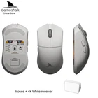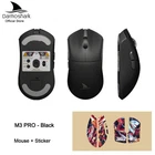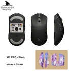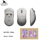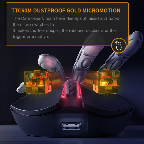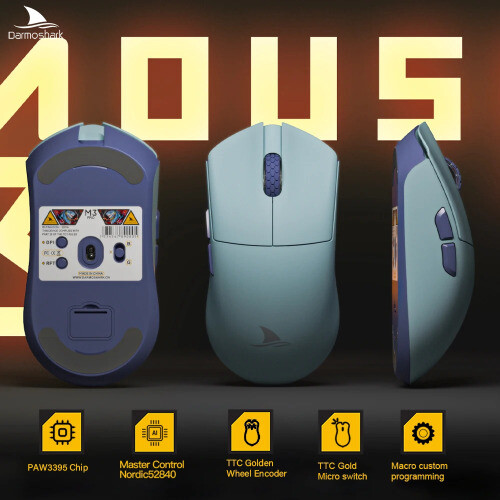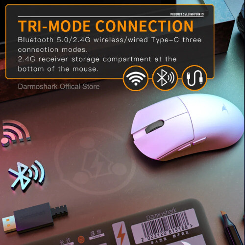 Product model:M3 pro Shell material: ABS Optoelectronic IC:PAM3395 Controller: Nordic N52840 Micro switch: TTC 60M Middle key switch:Huano Encoder: TTC golden wheel 2 million laps Connection mode :wireless/ Bluetooth / wired Connection Lithium battery:500mAh Maximum speed:650IPS FPS image processing:26000fps Acceleration:50G Operating Voltage:USB Wired:DC5V±5% Wireless:DC3.7V DPI:400 red, 800 blue (default), 1600 green, 3200 purple, 4800 yellow DPI:26000DPI( Driver settings) Wired/2.4GHz: red light 125HZ, blue light 500HZ,green light 1000HZ Size:129.55*66.12*39.23mm Weight: net weight 55±2G Driver installation: only Windows system is supported Bluetooth does not support drivers. Operating system: Wired and 2.4G modes: WinXP/Win7/Win8/Win10/Win11/Macos Bluetooth mode: Win8/Win10/Win11/Macos Driver installation :http://www.darmoshark.cn/ Packing listing : 1 x M3pro Gaming mouse 1 x USB2.0 Type-C Cable 1 x 2.4G Wireless Receiver 1 x User manual 1 x Adapter 1x Foot stic Product picture Bluetooth pairing operation: When the bottom three section switch is turned to the B icon, press the left, middle and right buttons at the same time, and the blue light of the scroll wheel position flashes, entering the pairing state. At this time, you need to turn on the Bluetooth device to search for the N3 Mouse before pairing. After the connection is successful, the indicator light goes out. 2.4G pairing operation: When the bottom three section switch is turned to the G icon, press the left, middle and right buttons at the same time, and the green light of the scroll wheel position flashes to enter the pairing state. At this time, the receiver needs to be inserted. After the connection is successful, the indicator light goes out. (Note: The factory has been paired and it is OK. If the 2.4G has no function, this step can be followed