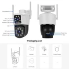 Dual-Lens with Dual Screen Auto Tracking PTZ WIFI Camera Dual lens, Dual screen, Notifications alarm, humanoid tracking, two way voice intercom 360 monitoring, full color night vision, IP66 waterproof, mobile phone remote monitoring,Share video, SD card storage, 24 hours video recording Main Features: - Dual lens camera. Top Lens is 4MM; Bottom Lens is 4MM - Dual-lens dual-sensor dual-screen, wide-angle Viewing + Long Distance Viewing to achieve clear monitoring from far and near; - Dual light source design, built-in infrared light + white light, night vision infrared and night vision full color can be set; - Pan Tilt Move: Bottom Lens: Horizontal: 350 degree; Vertical: 90 degree. - 2.4G WIFI + RJ45 network port for Internet access; - Support TF storage and cloud storage (need pay in O-KAM Pro app); - Two-way voice intercom, two-way video synchronous recording and playback - Humanoid detection Smart Alert: Motion Triggered with Alarm, APP Push notifications and Alarm recording - Auto Tracking: When ip camera detects object moving, it will auto move follow the object. -Smart Phone APP name: "O-KAM Pro" from Google Play or iOS APP Store Packing List: 1x PTZ Camera 1x User Manual 1x Power Supply 1x Screws Bag 4MP camera version: Means that the single lens is 2MP, so the dual-lens is 2MP+2MP=4MP. Dual Lens and Dual Screen There are 2 video screens in APP, the upper one is fixed position camera and the lower one is PTZ camera. Double Lenses ,Multiple Views One camera can monitor two positions, which is equivalent to two cameras, saving you more money. Configuration of double-lens, a fixed -point monitoring, a pan -tilt monitoring dual lens monitoring, to capture more detail of the scene. 350° Pan & 90° Tilt Rotate Due to the horizontal 350° and the vertical 90 °, you can remotely control the wifi outdoor camera to view every corner via your mobile phone. Real Two Way Audio Built in microphone and speaker,support real time video,which allows you talk with your visitor in real time wherever you are. Smart Night Vision Built -in White LED and IR LED, you can choose color night vision or infrared black and white night vision. IP66 Waterproof / Dustproof The camera is equipped with IP66 case , which is waterproof, sun-proof and dust-proof. It is suitable for any environment. AI Human Detection Alerts Quickly finds human targets and immediately sends App notifications to your phone so you can see what's happening anywhere. AI Auto Tracking When someone passes through the protected area, the camera will detect the person's movement and follow the person. Support TF Card Storage and Cloud Storage(Need Pay For) The camera supports up to 256GB TF card local backup and also provides cloud storage service(Need to pay extra cost). Wifi Connection & LAN Connection Powered by DC12V adapter, you can connect the camera to Wi-Fi network. you can setup wifi connection of the camera or LAN Search with network cable connected to router, work with 2.4G wifi only (Does not support 5G). Suitable for many places It can be installed in almost any environment, watching the mysterious parking lot, watching the lively Home, guarding the villa, guarding the warehouse. O-KAM Pro App Remote Access You can get a live broadcast of the capture video anytime, anywhere. Supporting Multiple Users watching live video at the same time via phone APP. Q&A Q: Which APP to bind , and where can I download it ? A: APP [O-KAM PRO], download it in Google Play or Apple Store. Notice: Do Not Bind to App EYE4, for EYE4 Is Not Compatible with New Camera. Q: How can camera bind to APP [O-KAM PRO]? A: Click on the [+] symbol in the upper right corner, scan device's QR Code. App will prompts how to do. Q: Why WIFI can't configure successfully? A: This model supports 2.4GHz network frequency. Please choose the right WIFI signal. Q: Why 4G SIM card can't configure successfully? A: 1) Deactivate the PIN code of the SIM card. 2) Check the correct direction to insert the SIM card 3)Please insert the mobile phone SIM card, don't use pocket-wifi / MiFi / Portable Wireless Modem. Q: If there’smalfunctionof device / the camera was broken / parts are missing, can I open a dispute directly ? A: Please directly contact us online before opening dispute. We'll certainly solve your problems or give you nice compensation. Only contact us online , can solve your problem faster and better. Q: The package has stuck at customs / Fail to clear customs , What should I do? A: Please provide proof materials for customs clearance according to the notification message from the customs. Q: Should I pay for the Duty/Charge? A: Generally speaking, buyers don’t need to pay customs duties. But if you encounter customs random inspection, you may need to pay the customs duties. Q: If I want to return, would you pay for the return shipping charges? A: [Return of Goods without Reasons] isn’t supported, and the seller doesn’t bear the shipping costs for [Return of Goods without Reasons]. If the product is faulty, please directly contact the seller for a solution. Q: Why the mini camera, for example CB75, only works for a few hours, are you lying to me ? A: 1) Only CB75 turn on [power saving mode], can it works over 10 days (Calculated by triggering 20 alarms per day). 2)If the CB75 runs non-stop in regular mode with frequent alarms throughout the day, its theoretical operating time is 7 hours. Q: Can mini camera CB75 model be installed in car ? A: It isn’t recommended to put it in car for a long time, for high temperature will make battery unstable. We’re producing and testing high temperature resistant MINI camera, which will be on the shelves soon. Q: What's the default password. A: The default password is 888888. For your privacy, please modify the password after you connect it. Q: Why can’t I connect the cameras,such as CS58 and CS55, to NVR ? A: 1)Bind the camera to APP [O-KAM PRO]. 2)Modify the plaintext password in APP (default password is 888888). 3)Then r