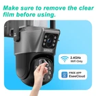 Dual Lens Dual Screen PTZ Outdoor Camera: outdoor camera features dual lenses, including a fixed lens and a rotating 355° horizontal lens with vertical 90° rotation, offering a comprehensive 360° view with minimal blind spots. The dual screen view allows users to switch between the bullet and dome screens with a single click, enabling rapid target identification and stabilization. Additionally, the camera is equipped with 10X digital zoom, allowing users to focus on specific details with precision 2K High-Definition Live Video: This WiFi outdoor security camera equipped with untra-clear lenses, that provides 8MP (4MP + 4MP, 2304*1296P) full HD images and video, offering clear visibility in both day and nighttime conditions. Its intelligent motion alarm feature is designed to provide real-time, accurate alerts in black-and-white mode, enhancing security and monitoring capabilities PIR Motion Detection & 2-Way Talk: This outdoor camera is equipped with a built-in microphone and speaker, enabling real-time, two-way audio communication. The mobile app allows you to deter potential intruders, monitor visitors at your door, and communicate directly with family or friends. The siren, flashing white light, and two-way talk feature collectively provide a deterrent against unwanted visitors and potential theft IP66 Waterproof Protection: This WiFi security camera can be mounted on a wall or ceiling. It is IP66 waterproof and ideal for use in extreme weather. It's perfect for open areas like car parks, garages, driveways, gardens, and front gardens Please note: The security camera only supports 2.4GHZ WiFi networks, not 5GHz. The battery-powered WiFi camera does not support 24/7 continuous recording. It is only capable of live view and motion detection recording. As we use advanced face recognition technology, we recommend avoiding crowded places when using the camera to conserve battery power. If the battery is dead, please use a 5V power adapter to charge the camera( input: 5 volt 1A, do not support 2.4A or 3A )