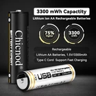 Lithium Batteries AA:High Capacity AA Li-ion batteries with 3300mWh Lithium ion battery,low self-discharge rate and long lasting use give you a better experience when playing electronic toys. Lithium ion battery has a better performance, it is lightweight and with a portable protective case very easy to storage. Quick Charge AA Batteries:Quick charge within 1.5hours and 2.5hours for standing charging speed. Comes with 2 usb to type c charging cord,1 black+ 1 in white. Do not need a battery charger, you can charge the batteries with any power source with USB port. 4pack aa batteries can be fully charged within 1.5 hour for fast charging mode,2.5H by standard charging speed, comes with USB C 2 in 1 charge cable (1 Black,1 white),it not require any batteries charging adapter, it powered by USB power source like power-bank,power slot with USB bay ,DC or AC adapter or computer, laptop,easy to charge. Green led light indicates the charging is in processing ,and when it is green is fully charged. Safe :Built-in PCB Protective Chip,to protect aa batteries from over-charge,over-discharge,over-heat and short-circuit. NOTE: DO NOT Use constantly for high current draw products, when the batteries discharge current higher than 2A it will be automatically shut off because of the over-current protection design. It is safe to use and charge. Precautions:1. Working condition:-20~60℃ Storage temperature:-10~25℃ 2. Please us if there anything need our help.