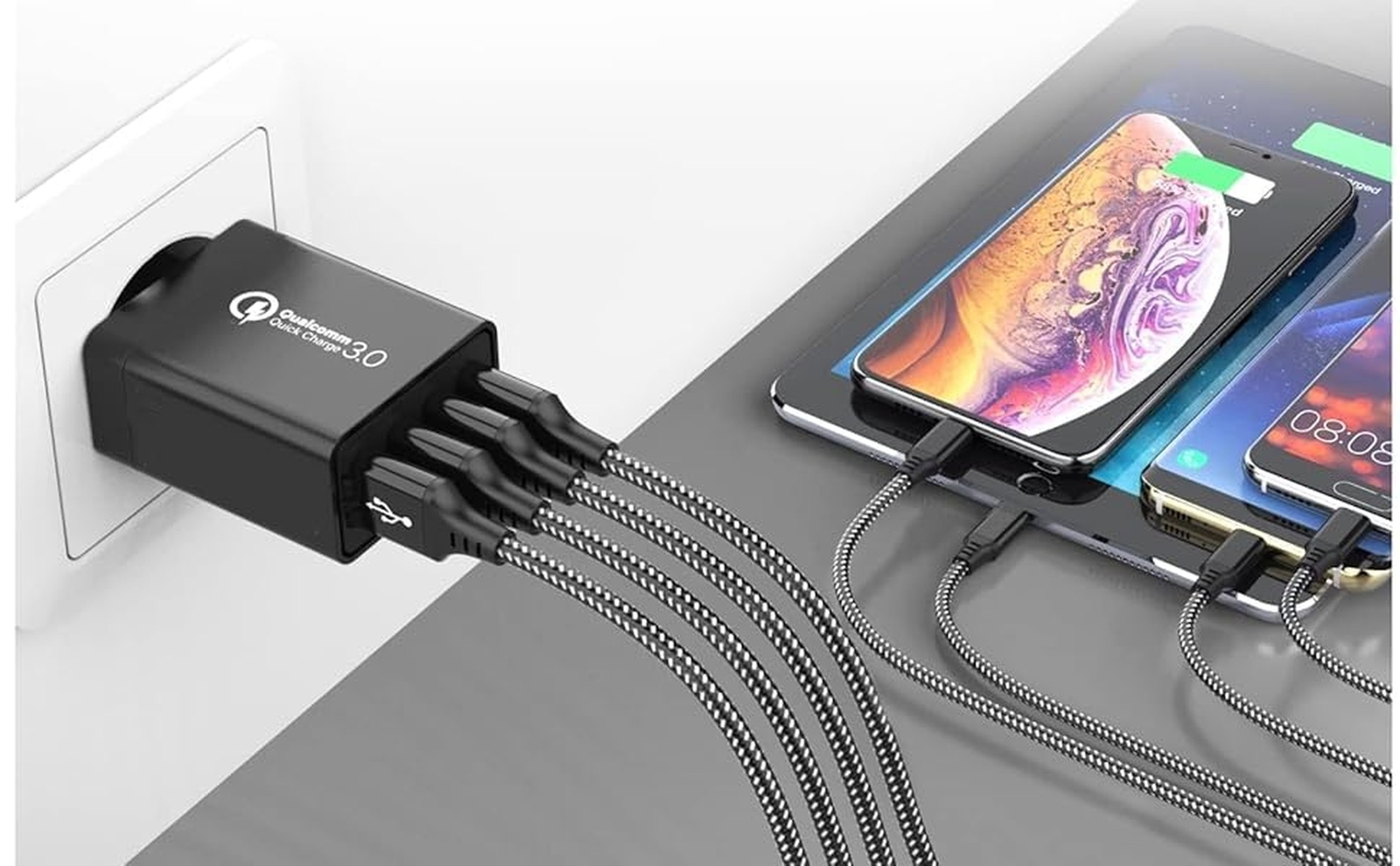 USB Wall Charger Multiport QC.3 Quick Charge 4-Port Fast Charger Block, Multiport USB Cube Power Adapter Wall Charger Plug Charging Block for All Mobiles Samsun Galaxy, Xiaomi, Redmi, Oppo, iPhones Product Details Brand: P37 Connectivity Technology: USB Connector Type: USB Type A Compatible Devices: Headphones, Tablets, Cameras, Cellular Phones Compatible Phone Models: Samsun Galaxy, Iphones, Tablets, Xiaomi, Cameras.. Universal compatibility Included Components: 3 USB 2.0 Cables Special Feature: Fast charging, Multiport QC3.0, Bluelight, Travel adapter Color: black Input Voltage: 120 Volts Mounting Type: Wall Mount Package Dimensions: 3.74 x 1.93 x 1.18 inches Item Weight: 1.41 ounces Item model number: Bk376 Date First Available: September 2, 2024 Manufacturer: Shenzhen Yaffis Technology Co., Ltd. Country of Origin: China Universal Compatibility: The multi usb charger is compatible with all phone devices, including the following brands and models:, Iphones,Samsun Galaxy, Oneplus, Nokia, THC, Huawei, Xiaomi, Redmi, Realme, Oppo, Motorola. A fast wall charger with QC3.0 connectors: faster and safer USB charging technology. It charges all devices and provides fast charging for devices compatible with this technology. The QC 3.0 port offers 4x faster charging than a regular charger when used with a fast charging cable. It also supports QC2.0 and 1.0 technology. Multi-level Protection & Fast Charging: The USB wall charger made of fireproof materials and intelligent system for smart and safe charging without worries. Additionally, the unique smart technology offers temperature control and protection against overloads, short circuits, overcurrents, overvoltage/undervoltage and electromagnetic interference. When you connect a USB device, your USB wall charger recognizes the device and provides exactly the power it needs to avoid the risk of damaging the device being charged. The multi-port charger is perfect for travel. This charger is convenient to use, very easy to carry and only needs 1 power outlet to charge 4 devices. Great advantage at the airport for example when you are waiting for your flight and need to charge your mobile phone, earphones and anything else you want