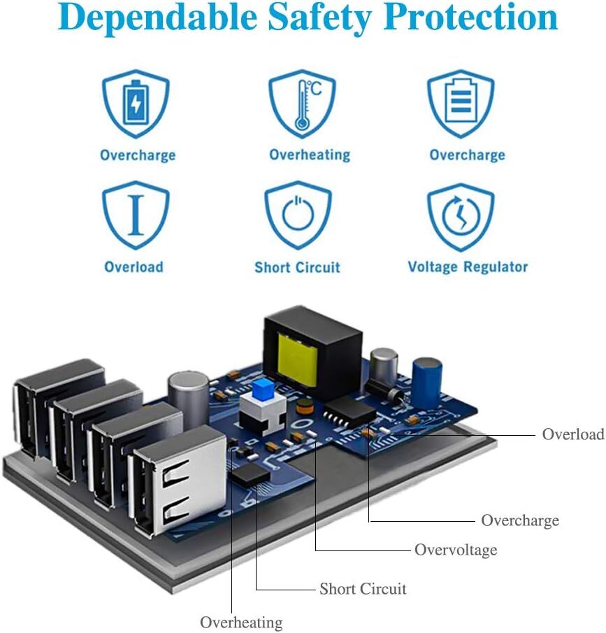 USB Charging Station Charging Dock 4 Port Fast Charging Station for Multiple LOVE BY FAMILIES-This portable USB charger station is a great gift for your dads, moms, mother-in-law, father-in-law, sisters, brothers, coworker, girlfriend, boyfriend. Charging station can be used for your home, kitchen counter, desktop, nightstand, office, school, hotel, travelling. MULTI CHARGING STATION is capable of charging everything in one place without bunch of chargers plugged into your power outlet, It also avoids cables cluttered around, which makes the devices spread all over the desk. 🔴 The product itself does not contain USB cables CHARGING DOCK - EASY TO USE. This charging station has built-in Status LED INDICATORs.Also can be used as nightlight.Innovative removable baffle design– detachable baffles and bases can be effortlessly separated. Just choose one of the baffles to be left, then you have adequate space to fiddle with the posture of your devices, lying flat or sideways to charge. USB CHARGING STATION - UNIVERSAL COMPATIBIE. Supports all types of usb charging cables.Docking station can support all Android Phones,tablets, cameras, eReaders, Bluetooth headsets, speakers and more. WARRANTY & MONEY-BACK GUARANTEE-We offer a 1-Year Limited Warranty with this mobile docking station. We also offer a 30-day Money Back Guarantee through so your purchase is safe and protected. ------------------------------------------------------------------------------------------ Shipping Policy: Domestic lower 48 states shipping is free and expedited. Shipping is also free to the rest US states and US Protectorates including Puerto Rico, Alaska, Hawaii, APO/FPO, but delivery times are longer than usual. If you need your order by a specific date please contact us before you make the purchase for a delivery estimate. ------------------------------------------------------------------------------------------ Return Policy: Your satisfaction is guaranteed! If for any reason you are unhappy with your item, just return it within 30 days for a full refund. Please contact us prior to initiating a return so that we can issue you a refund authorization.