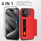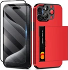 4-in-1 for iPhone 15 Pro Wallet Case with Screen Protector & Camera Cover, Full Body Hybrid iPhone 15 Pro Case with Card Holder Shockproof Protective Case for iPhone 15 Pro for Women Men, Red