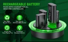 Product Features: 【 2600mAh Ultra Higher Capacity 】:Extra large capacity rechargeable battery pack of 4 - up to 2600mAh For Xbox one. Surpasses other name brand batteries.(Not fit for xbox 360!) 【 20-25 Hours Game Time 】:Charger station can charge up to 4 batteries simultaneously. It only takes 5 hours to fully charge 4 controller batteries. A single battery provides up to 25 hours of play time, saving you a lot of time and affording much more gaming time. 【 Unique LED indicator design 】: For Xbox one battery charger has a clear LED charging status indication, when charging, the indicator will change to red. When fully charged, the indicator will change to green. 【 2000+ Rechargeable Times 】:Say goodbye to AA batteries. This rechargeable battery pack lets you always have a reusable battery backup, so you don't have to buy a lot of disposable batteries for xbox one & xbox series x|s controllers. 【 Intelligent safety protection 】:The rechargeable battery pack has built-in intelligent overcharge, overcurrent, overvoltage, overheat and short circuit safety protection. Don't worry about damaging the battery due to improper use. Specifications: This rechargeable battery pack and charging station specifically for xbox controllers is reliable and higher capacity than commercially available items at 2600mAh, providing four charging ports for fast charging and a continuous great gaming experience. 1. Compatible with Xbox Series X|S/Xbox One/Xbox One S/X/Elite controllers 2. Equipped with an IC chip, the battery and charging station output stable voltage to avoid unnecessary danger 3. Each charging slot on the charging stand is designed with a battery guide, so you can easily charge the battery by simply following the guide 4. Each controller battery takes less than 5 hours to fully charge, and can easily provide you with more than 25 hours of game time 5.Color: White Compatibility: For Xbox Series X/S Controller For Xbox One Controller For Xbox One X Controller For Xbox One S Controller Package Included: 4*2600mAh High Capacity batteries For Xbox one 1*Intelligent Charging Station with 4 Independent Indicators 1*Charging Cable(1M) 1*Manual