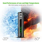 Descriptions : *EBL batteries devote to low self-discharge technology, holds 75% power after 3 years while general rechargeable batteries will lose all the power if not using for a long time. *The batteries made with superlattice alloy, high retention rate of electric charge, low loss of capacity, excellent discharge performance at high temperature, can be recharged up to 1200 times, super long life. Features: [Match Your Device Perfectly] - Perfect used for solar powered garden lights, landscaping lights, lawn lights, etc. replace all alkaline disposable batteries that power your TV remotes, wireless mouse and keyboards, gaming controllers, RC remotes and others. [Good Performance] - Much better high temperature performance than other type batteries, can be used in -4℉ to 140℉, They can be charged from the sun even in the snow. [Low self-discharge] - Embedded seal structure expand the space of crystal lattice, make more room for hydrogen, so EBL batteries will holds 75% power after 3 years benefit from its concentration to low self-discharge project. [Storage Cases] - every 4 batteries we packed in one professional battery storage case - carefulness due to professional Specifications: 1. Battery Type: AAA 2. Capacity: 500mAh 3. Voltage: 1.2V 4. Chemistry: Ni-CD Package Included: 4 x AAA Batteries Attention: Never reverse installing, heating, disassemble or put it into fire, otherwise it may cause liquid leakage or explosion. Don't mix use new and old or different cell type batteries. Keep out of reach of children.