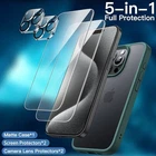 5 in 1 Matte Case for iPhone 15 Pro 6.1-Inch with 2-Pack Each Tempered Glass Screen Protector and Camera Lens Protector, Translucent Back Shockproof Phone Cover (White) [5-in-1 Full Protection] There are 2-pack screen protectors with an alignment tool, 2-pack camera lens protectors and a matte case, providing all-around protection for your phone. Easy installation with included accessory kits,[Military Grade Protection] This case is certified as military grade drop-proof for a 6 feet drop test, and specially designed with shock-absorbing cornered-cushions, highly protects your phone against severe damage,[Premium Tempered Glass] Both screen protector and camera lens protector are built with 9H hardness material. HD clear and ultra-responsive as using your bare phone, keeping the screen and lens away from daily scratches,[Translucent Design] The hybrid case with flexible TPU frame and hard PC matte back offers you an ultimate touch feeling. No annoying fingerprints and oil smudges. Meanwhile, the phone�s delicate logo can be showed off,[Snug-Fit Design] Exclusively fit iPhone 15 Pro 6.1-inch. Compatible with wireless charging. And perfectly aligned cutouts allow easy access to the speaker, camera, buttons and other features Product Description JETech 5 in 1 Matte Case with 2-Pack Each Tempered Glass Screen Protector and Camera Lens Protector, Translucent Back Shockproof Phone Cover