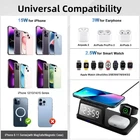 Features: [5-in-1]:The 5-in-1 wireless charger can wirelessly charge up to 3 devices, you can also connect 1 device for wired charging. It includes night light and alarm clock. LED Clock Display】:Equipped with time display and alarm clock, this charger is very useful to keep on your desk. [Widely Used]:The 5-in-1 charging cradle can be used in the bedroom, kitchen, office and anywhere you like. 5-in-1 Design】: The wireless charging station can charge your phone, Apple Watch, and headphones at the same time, leaving your desk and bedside table tidy and organized without messy cords. For better charging experience, please use QC 3.0 power adapter (QC 3.0 adapter not included). 【Safe Charging】:The cordless phone charger provides temperature control and voltage protection as well as short circuit prevention to ensure safe and stable charging. This wireless charger provides you with a safe experience. Anti-slip silicone pads on the base and bottom protect your device from scratches and slips while charging. 【Universal Compatibility】:Apple charging cradle for most Apple devices. Compatible with iWatch series 8/7/6/SE/5/4/3/2/1; Compatible with AriPods Pro/3/2/1; Compatible with iPhone series. (Not compatible with Samsung watches). Compatible with iPhone 8/X/11/12/13/14 series, Samsung S10/S20/S21/S22; Note8/10/20/21 series; other Samsung series that support wireless charging and all other cell phone brands that support wireless charging. Attention: 1.For a fast charging experience, please use a 9V-3A or 12V-2A power adapter (adapter not included). 2.The watch charger is only for Apple Watch, it can't charge Samsung Watch or other brand watches. Specifications: *Product name: 5-in-1 wireless charger *Mobile phone output: 5W/7.5W/10W/15W *Watch output: 2.5W (max) *Headphone output: 3W (max) *Charging distance: 1-8MM *Charging efficiency: ≥75% *Product Material: ABS *Product color: black Package List: 1*5-in-1 wireless charger 1*Type-C cable 1*User Manual Attention: 1.Not included not include the power adapter! 2.Item is limited to charger only, excludes headphones, watch! 3. Due to manual measurement, please allow a difference of 1 cm error! 4. may vary according to light color or monitor tint! On Dec 4, 2024 at 23:13:55 PST, seller added the following information: