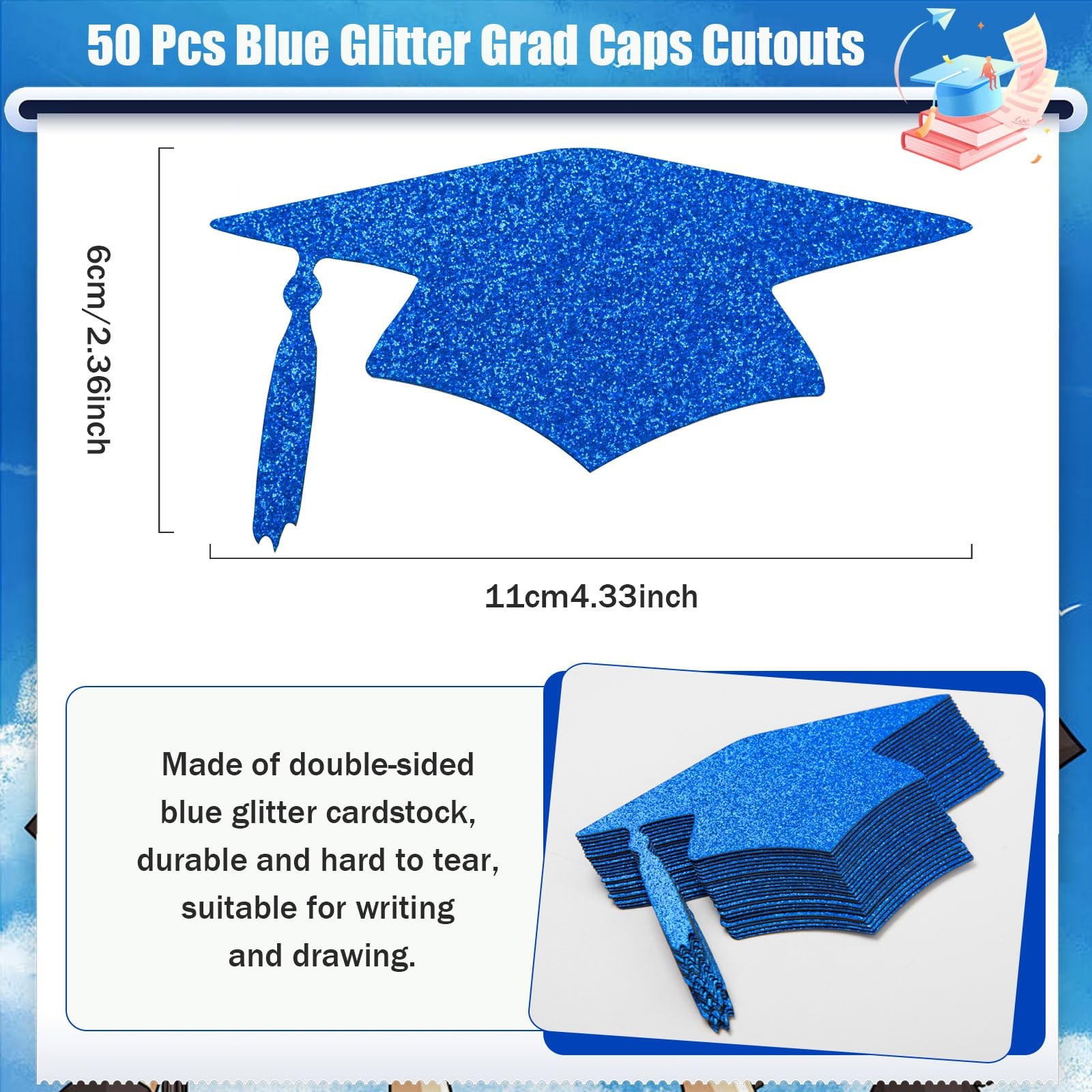 eBay Product Listing Welcome to Your Favorite My Store Your satisfaction is our top priority – Shop confidently 50 Pieces Grad Caps Cutouts Blue Glitter Graduation Cap Confetti Class of 2025 Graduation Party Decoration Table Decor for High School College Grad Party Supplies, 4.33Inch Item Gallery Item Description Graduation Cap Cutouts: the package comes with 50 pieces of glitter blue graduation cap cutouts, enough quantity can meet your various daily life or graduation theme party needs, you also can share them with your friends and family. Proper Size: our paper graduation confetti adopts the proper size, each cap cutout measures 11 x 6 cm/4.33 x 2.36 inches, and you can cut them and decorate them as you want, create your personalized craft decorations, wonderful decoration for grad party. Reliable Material: these graduation paper confetti are made of glitter paper card material, not easy to break or fade, reliable and durable enough for you to decorate, and the pre-cut shape is more convenient for you to use, saving more time. Graduation Party Supplies: our graduation cutouts are designed in grad cap shape, and feature a glitter blue color, classic and delicate, wonderful decoration for a grad party, suitable for decoration and craft making, bringing more atmosphere to the grad party. Multi-Purpose: the graduation caps cutouts can be widely used for DIY craft projects, such as graduation table centerpieces, bulletin boards, school class projects, greeting cards, cake or cupcake decor, perfect for graduation parties, school parties, back-to-school parties, birthdays, class activities and daily use. Special Features Features: Pre-cut Grad Caps Shapes: Our grad caps shape cutouts are made of quality glitter paper card material,pre-cut grad caps shape is more convenient for you to make your graduation crafts and projects A Great Gift: These paper die cuts have blank surfaces, and you can write words, blessings or notes on them, perfect for DIY crafts or customizing your own graduation party theme, you can also share them with your friends and family as delicate gifts to celebrate their Graduation. Specifications: Color: blue Size:11 x 6 cm/4.33 x 2.36 inches Material:glitter paper card material Package includes: 50 x Blue Glitter Grad Caps Cutouts Warm notes: Please allow slight deviation due to manual measurement. Please allow slight color differences due to different monitors. Our Guarantee To You We offer fast shipping, free delivery, and 100% customer satisfaction guarantee. Not satisfied? Return your item for free within 30 days. 30-Day Free Returns Shipping Details Items will be sent to your eBay address. Please verify before purchasing. Typical delivery within 3-7 business days. Professional shipping services used for all orders. We ship to the continental US (48 states only). Unable to deliver to Alaska, Hawaii, or territories. No APO/FPO or PO Box deliveries available. We use eco-friendly packaging Payment Options We accept these secure payment methods: All transactions securely processed through eBay's payment system. Simple Returns 30-Day Satisfaction Promise Contact us through eBay messages within 30 days of delivery. We'll provide return instructions and our address. Return the item in its original condition. We'll process your refund within 48 hours of receiving the item. Get In Touch Have questions about your order? Contact us through eBay messaging for prompt assistance. We typically respond within 24 hours.