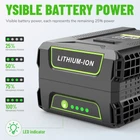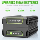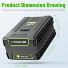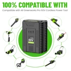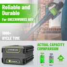 About this item: Replacement Battery for Greenworks 60v Battery -- This for greenworks pro 60v battery with a solid value in good design and engineering, for greenworks battery 60v has 5AH capacity, wattage at 300Wh, support long-lasting performance and durability, for greenworks 60v battery 5.0 ah great replace for greenworks 60v batteries including LB60A00 LB60A01 LB60A02 LB60A03 Reliable Quality 60 volt battery for greenworks -- High quality battery cells integrated microchip protects the rechargeable battery replacement for greenworks batteries and extends lifetime, for greenworks lawn mower battery equipped with automatic overload cut-off, short-circuit and over-voltage protection, no memory effect, can be charged or discharged as needed without capacity reduction About this item: Replacement Battery for Greenworks 60v Battery -- This for greenworks pro 60v battery with a solid value in good design and engineering, for greenworks battery 60v has 5AH capacity, wattage at 300Wh, support long-lasting performance and durability, for greenworks 60v battery 5.0 ah great replace for greenworks 60v batteries including LB60A00 LB60A01 LB60A02 LB60A03 Reliable Quality 60 volt battery for greenworks -- High quality battery cells integrated microchip protects the rechargeable battery replacement for greenworks batteries and extends lifetime, for greenworks lawn mower battery equipped with automatic overload cut-off, short-circuit and over-voltage protection, no memory effect, can be charged or discharged as needed without capacity reduction, the for greenworks lithium battery easy meet your requirement Widely Compatibility -- 60 volt for greenworks battery seamless fit for greenworks 60v tools lineup including the for greenworks pro 60v indoor and outdoor products, including lawnmower, blowers, string trimmers, chainsaws, weed whacker, leaf blower, pole saw, hedge trimmer, etc... , prolonging tool run time, and 60v for greenworks battery can be fast charged with all the original for greenworks 60V Chargers CH60R00 / 2951402 / G60X2UC6 / 2928702 / G60UC / 2936902 / 2958702 Visible Battery Power -- Replacement for greenworks pro battery 60v with smart 4 led fuel indicators to show the batterty charging status, and if in demand, press the button near the indicator LED to show how much power remains in the for greenworks 60 volt battery replacement
