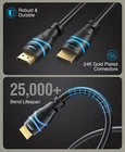 (TM) High Speed HDMI Cables are premium quality cables for your gaming or home theater setup. Compatible with latest HDTV technologies cables are fully certified to support the latest & advanced HDMI features. Backwards Compatible with Previous HDMI Standards The cable is backwards compatible with all previous HDMI standards, so you'll be able to use this cable with all your HDMI devices. When you connect two devices with different HDMI standards, they will automatically find the best available connection. Quality Picture and Sound - 26AWG - CL3 Rated for in-wall installations - Supports 3D, Ethernet and Audio Return - Supports 1080p, 1080i, 720p, 480p, and 480i Resolutions - Works with all HDTVs, Blu-ray players, Xbox 360, PS3 and other HDMI devices - HDCP Compliant - Full metal jacket connector provides strength, durability and prevents interference as compared to other cables - Supports True HD Dolby 7.1 and DTS-HD Master Audio All HDMI cables are backed by a 1 year . Please us via if you have any questions. ➤ High Speed 4K HDR HDMI: This cable supports HDMI 2.0b including upto 18Gbps high bandwidth (600 MHz Refresh Rate), Mirror & Extend mode, Ultra HD 4K 30Hz, HD 2K 1080p, QHD 1440p, HDCP 2.2, 48 bit/px HDR color depth, Audio Return(ARC), 3D,Ethernet,Dolby TrueHD 7.1 and hot plugging ➤ Heightened Viewing Experience: Supports HDMI 2.0 standard and backwards compatible with HDMI standards . Enjoy unparalleled video quality, crisp and accurate sound with no lag ➤ Unmatched Quality: The cable has 24 AWG copper wire and triple shielding . 24K Gold-plated full metal jacket connectors resist corrosion while maximizing stable signal strength. Can withstand over 25,000+ bend lifespans ➤ Universal Compatibilty: Compatible with all of HDMI devices like Blu-ray players, Fire TV, Apple TV, Roku, XBox One, Nintendo Switch, PC, laptop, monitor, projector etc. Perfect for home and office use ➤ : cables are backed by a and US-based customer support. Feel free to us if you have any questions or concerns