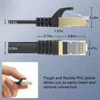 Cat8 Ethernet Cable - 50 Feet 40Gbps 2000MHz High Speed : 50ft Cat8 ethernet cable offers bandwidth up to 2000MHz and data speed up to 40 Gigabits per second, ensuring high-speed data transfer for server application, cloud computing, and HD video streaming without any lag or stop Great Stability : Shielded gigabit ethernet cable Cat 8 is composed of 4 pairs stranded bare copper conductors, SSTP (Screened Shielded Twisted Pair) and 24K gold-plated RJ45 connectors with 50 Micron gold-plated contact pins. Our Cat 8 cable provides a better protection against crosstalk, EMI/RFI interference and ensures accurate data transfer. With molded strain-relief boots and snagless molds, the Cat8 cables provide durability and ensure a stable connection Flexible Flat Design : Slim Cat8 flat ethernet cable effectively avoids tangling and saves space . Flat lan cable is easy to pass through the carpet or door, hide or run along any surface More Applications : Our Cat 8 network cable provide universal connectivity for any devices with RJ45 port, such as computer servers, routers and other gaming system, etc. Cat8 patch cable is backward compatible with Cat5, Cat5e, Cat6, Cat6a and Cat7 ethernet cable Excellent CAT8 Internet Cables : Black Cat8 ethernet cable 50 ft comes with 30 cable clips (more or less). With upgrated PVC jacket, our Cat 8 ethernet cord is anti-corrosion, more sturdy, anti-aging and pull-resistant, could be used in wall or outdoor (cannot be directly buried)