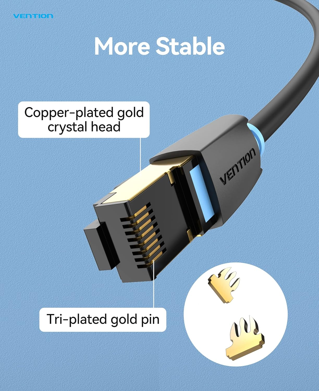Store New Arrivals Add to Favorite View Feedback Contact VENTION Cat 8 Ethernet Cable 50Ft Cat8 High Speed Internet Network Patch Cord with Gold Plated RJ45 Connector Professional LAN Cable Heavy Duty Waterproof Compatible for Router Patch Pane Modem PS5 Description Item model number IKA Brand VENTION Cable Type Ethernet Connector Type RJ45 Compatible Devices function(f) {var _np=(window.P._namespace("DetailPageProductOverviewTemplatesJava"));if(_np.guardFatal){_np.guardFatal(f)(_np);}else{f(_np);}}(function(P) { P.when('A').execute(function(A){ A.on('a:truncate:po-attribute-truncate-3:updated', function(data) { var isTruncated = !data.truncateInstance.getIfTextFits(); var seeMoreElement = document.getElementById('po-attribute-see-more-id-3'); if(seeMoreElement) { seeMoreElement.style.display = isTruncated ? '' : 'none'; } }) }); })); Any device with an RJ45 port, including Routers , Monitor, Modems, Printer, Splitters , PS3, PS4, PS5, Server, Projector, Patch Panels, Switches, Laptop, Scanner, Notebooks, PCs, Network Cards, Macs, PoE Devices , Xbox Series X, Xbox Series S, Xbox One and so on See more Manufacturer VENTION Special Feature Waterproof Package Dimensions 10 x 7 x 2 inches; 1.35 Pounds Size 50FT 【Extreme Weather Resistance】 The VENTION Cat 8 Ethernet cable is built to withstand even the harshest conditions. With its weatherproof and UV-resistant design, it can handle direct sunlight, extreme cold, humidity, and hot weather without compromising performance. Perfect for outdoor use. 18-month warranty included. 【Superior Construction】 Designed with high-quality materials, including pure copper core, aluminum foil shield, woven mesh shield, and PVC outer cover, the VENTION Cat 8 cable offers exceptional durability and flexibility for heavy-duty tasks. It's suitable for both indoor and outdoor use, thanks to its water-resistance and anti-corrosion properties. 【Wide Compatibility and Enhanced Performance】 With shielded RJ45 connectors on both ends, the VENTION Cat 8 Ethernet cable provides a secure and stable connection. It is compatible with various devices such as gaming consoles, routers, IP cameras, servers, and more. The 28AWG copper wires ensure superior performance, allowing for high-speed data transmission and reduced lag. 【Professional Certification and High-Speed Data Transfer】 The VENTION Cat 8 cable has undergone professional Cable Analyzer testing and is certified for reliability. With its F/FTP (foiled twisted pair) and single-strand OFC wires, it supports bandwidths up to 2000MHz and data transfer speeds up to 40Gbps. Enjoy a seamless experience streaming HD videos, gaming, and working with high-performance network devices. 【Reliable Customer Support】 We value our customers' satisfaction and provide 24/7 customer care. If you have any questions or concerns, our dedicated support team is here to assist you promptly. Trust in our commitment to excellent service. Product Description The newest high performance high speed cat 8 ethernet cable Reasons for Choosing Cat 8 Ethernet Cable: High Speed : The latest version of the ethernet cable, the speed can be up to 40Gpbs, faster than other internet cable,without waiting for download. Transmission is More Stable : It is composed of double-shielded (SFTP) network jumpers, and the signal is more stable than cat7. More Durable: Cat 8 network cable adopts multi strand oxygen free copper wire, which is soft, easy to bend and more durable. Widely compatibility :Fully compatible with cat7/cat6/cat5 and equipment with rj45 interface. For the future :Your equipment is upgrading, your quality of life is improving, and the world is making continuous progress. This is a future oriented network cable. Wide compatibility(not a full list): Laptop PC TV Router Modem PS5 /PS4 /PS3 Nintendo Switch Xbox Series X / Xbox Series S / Xbox One Strong and Long-lasting The test shows that the network cable can be bent at least 10000 times without breaking, which is very suitable for long-term use. Core upgrade The core of cat8 Ethernet cable adopts multi strand oxygen free copper wire, which is soft, easy to bend and more durable. Gold-plated Contacts Vention cat 8 Ethernet cord adopts gold-plated connector, which can effectively reduce the loss in the process of data transmission and make the network speed faster and more stable. ABOUT US We offer the best prices around on high quality products. Our E-store includes media such as books, movies, music and games while offering electronics, toys, sporting apparel, clothing, tools, general home, garden items and more. SHIPPING We are always working hard to ensure your package arrives as soon as possible. Please understand that some factors like weather, high postal traffic, and the performance of shipping companies are outside of our control. We offer free shipping to the lower 48 states and ship within 2 business days of payment, usually sooner. We do not accept P.O. Boxes. Please provide a physical address. RETURNS We offer a 30-Day Return Policy on items which you are not completely satisfied with. You have the option for a full-refund or an exchange of the item. No returns are available on items shipped outside of the USA. PAYMENT We accept PayPal. CONTACT US This page content is yet to come Please ad us to your favorite seller and visit again later Thank You CUSTOMER SATISFACTION We try our very best to make sure every customer is completely satisfied. If there's a problem, message us! We're happy to help.