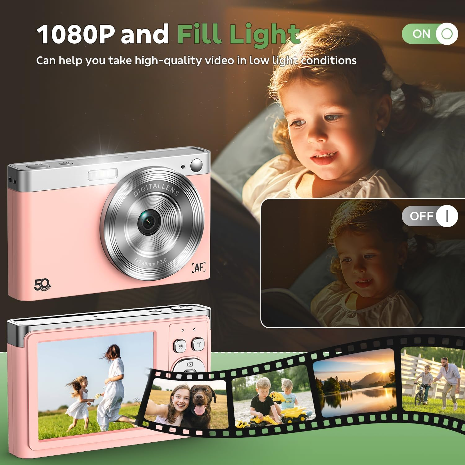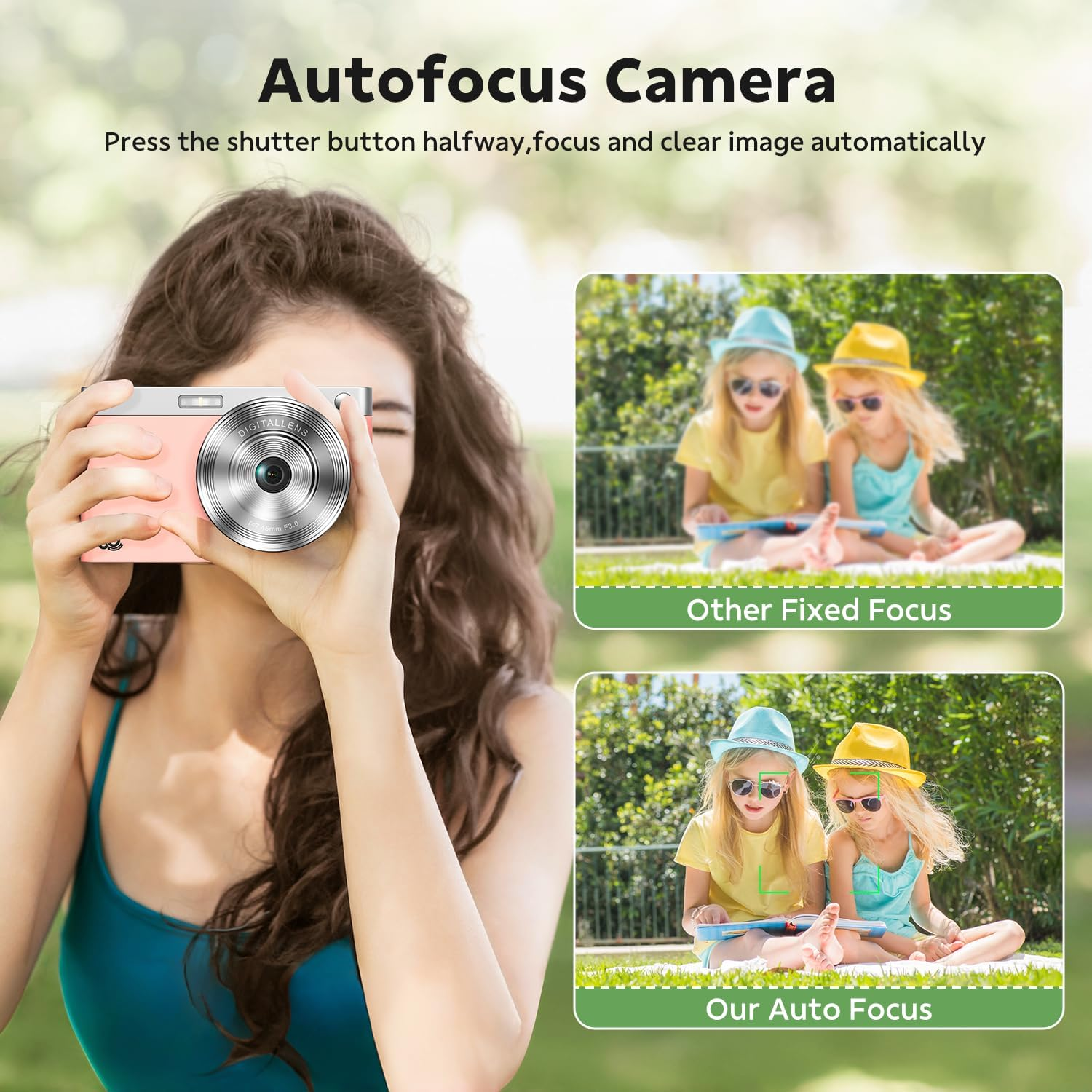 Digital Camera, FHD 50MP 1080P Autofocus Camera, Digital Point and Shoot Camera Vlogging Camera with 16X Zoom anti Shake, Compact Camera for Boys Girls Kids Camera with 32GB SD Card, 2 Batteries-Pink 【50MP & FHD 1080P Camera】- The digital camera has an HD video resolution of 1080P and an image resolution of 50MP to significantly improve image sharpness and capture clear videos. The photo camera is a meaningful Christmas or birthday gift small digital camera for kids to cultivate their interest in photography, experience the lovely life, and leave funny memorable moments with family or friends. 【Multifunctional Compact Camera】 -The kids digital camera supports various features, such as self-timer, face detection, autofocus, anti-shake and 17 kinds of filters, etc, all contributing to a better shooting experience. The point and shoot camera comes with built-in microphone and speaker, enabling you to record clear sound while shooting videos and have sound playback for your recordings. 【Autofocus & Anti-shake Function】- The kids camera is also equipped with Anti-Shake function, which can take natural and clear photos with a simple setup. The mini digital camera has an autofocus function that allows you to quickly capture clear images. with 2 rechargeable 1000mAh batteries that allow you to record for long periods of use, and can also be set to automatically shut down to conserve energy. 【16X Digital Zoom & Flash Light】- The travel camera boasts a 2.8-inch screen and 16X digital zoom. While taking photos or recording videos, you can use the W/T button to zoom in or out, enabling you to capture detailed close-up shots or distant objects. The vintage digital camera builts in flash, which can be adjusted with the flash button, enabling you to take clear photos even in dark environments. 【Portable And Easy To Use】- The point-and-shoot digital camera is made of high-quality and environmentally friendly materials, safe and durable. Making it incredibly handy and easy to fit in your pocket or bag. The small digital compact camera is designed for amateurs, and its simple and convenient operation makes it ideal for beginners, kids, teens, the young, students, and the elderly to take pictures and shoot. Product Description 1 Autofocus Function 2 16X Digital Zoom 3 Face Detection 4 LED Fill Light 5 Record While Charing 1 Anti-Shake 2 Self Timer 3 Playback 4 View on the Computer 5 Button Function Display Resolution Maximum 50 MP Age Range Description Kid Battery Cell Type Lithium Ion Has Color Screen Yes Are Batteries Included Yes Maximum Webcam Image Resolution 50 MP Dots Per Screen 131040 Shooting Modes Movie Focus Type Fixed Focus Focus Features autofocus Auto Focus Technology Contrast Detection Flash Memory Supported Size Maximum 32 GB Is Electric Yes Movie Mode Yes Memory Storage Capacity 32 GB Image stabilization Digital Photo Sensor Technology CMOS Autofocus Yes Photo Sensor Resolution 50 MP Photo Sensor Size 1/3-inch Lens Type Wide Angle Flash Memory Video Speed Class V30 Audio Recording Yes Battery Capacity 1000 Milliamp Hours Effective Still Resolution 50 Sensor Type CMOS Media Speed [10-30 MB/s] Display Type LED Video Capture Format MP4 Flash Memory Bus Interface Type SD Express JPEG Quality Level Fine Model Number AC17XD Battery Weight 5 Grams Exposure Control [POSSIBLE_VALUES: Automatic, Program, Aperture Priority, Shutter Priority, Manual] Model Name Digital Camera Shutter Speed Description [VARIES] Battery Type Lithium Ion Number of Batteries 2 Lithium Ion batteries required. (included) Screen Size 2.8 Audio Input Built-in microphone Audio Output Type Internal Speaker Supported Image Format JPEG File Format JPEG Total USB Ports 1 Image Capture Type Stills & Video Mounting Thread Type 1/4-20 Compatible Mountings 1 Display Fixture Type Fixed Water Resistance Level Not Water Resistant Zoom Digital Zoom Exposure Control Type [POSSIBLE_VALUES: Automatic, Program, Aperture Priority, Shutter Priority, Manual] Supported File Format JPEG Shutter Type Rolling Shutter Connectivity Technology USB Flash Memory Speed Class C10 Built-In Media 2x Batteries, 1x USB cable, 1x Lanyard and Bag, 1x Kids Digital Camera, 1x 32GB SD Card, 1x User Manual Night vision No Special Feature Anti-Shake Enclosure Material Plastic Mount Type hot shoe mount Item Weight 0.23 Pounds Crop Mode 16:9 Has Image Stabilization No Frame Rate 30 FPS Viewfinder Display Size 2.8 Inches Color Pink Form Factor Compact Item Dimensions D x W x H 0.8"D x 3.94"W x 2.36"H Flash Memory Installed Size 32 GB Flash Memory UHS Speed Class U3 Flash Memory Type SDHC Image Stabilization Digital Digital Zoom 16 x Digital-Still Yes White Balance Settings Auto, Incandescent, Daylight, Fluorescent, Cloudy Aspect Ratio 16:9 External-Memory Size 32 GB Supported Audio Format MP4 Shipping Fast shipping is very important for us. Our standard US shipping service is FREE. Your order will be shipped within 2-3 business days upon full payment received. Your order will be delivered within 2-3 business days after the handling time. We only ship to the confirmed PayPal address. We reserve the right to cancel any order for any reason at any time. We are not responsible for undeliverable addresses. Returns and payment We offer a 30 days return policy from checkout winning date. We allow only PayPal as payment method FeedBack Your feedback very important to us, after you get your package and you are satisfied with our service please leave us positive feedback If you have any problem with your order / any questions please before leave any type of feedback For any questions, using eBay contact system Please visit our eBay store to check out other items for sale! Thank you for shopping at our store.