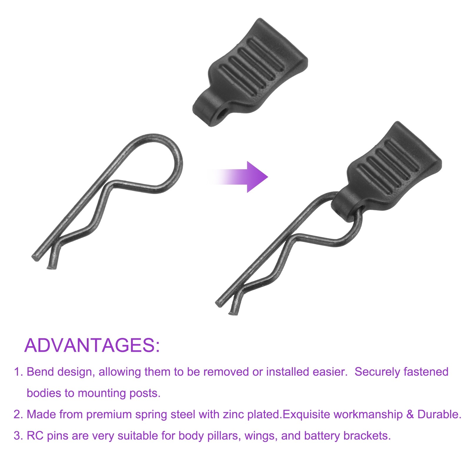 Document APPLICATION:Fit for 1/16 1/18 Scale RC Model Car. ADVANTAGES:Bend design, allowing them to be removed or installed easier. Securely fastened bodies to mounting posts.Made from premium spring steel with zinc plated.Exquisite workmanship & Durable.RC pins are very suitable for body pillars, wings, and battery brackets.PACKAGE CONTENT:Color:BlackLength: 20mm/0.79inchPackaging includes: 50x Body Clips Pins(with Pull Tabs)NOTE: These Car Clips effectively hold body shells in place, minimizing the risk of loose parts or damage, allowing you to enjoy uninterrupted and smooth RC car action.Please check sizing information before purchasing. 50Pcs Body Clips Pins, Black Universal RC Cars Parts for 1/16 1/18 Scale RC Car APPLICATION: Fit for 1/16 1/18 Scale RC Model Car. ADVANTAGES: Bend design, allowing them to be removed or installed easier. Securely fastened bodies to mounting posts. Made from premium spring steel with zinc plated.Exquisite workmanship & Durable. RC pins are very suitable for body pillars, wings, and battery brackets. PACKAGE CONTENT: Color:Black Length: 20mm/0.79inch Packaging includes: 50x Body Clips Pins(with Pull Tabs) NOTE: These Car Clips effectively hold body shells in place, minimizing the risk of loose parts or damage, allowing you to enjoy uninterrupted and smooth RC car action. Please check sizing information before purchasing. Hot Item Payment 1.We accept eBay payment . 2.Payment must be received within 7 business days of auction closing. Shipping 1.We ship to your eBay or Paypal address. Please make sure your eBay and Paypal address is correct before you pay. 2.Items will be shipped within 1-3 business day when we received payment. 3.Delivery time depends on destination and other factors. Description Policy 50Pcs Body Clips Pins, Black Universal RC Cars Parts for 1/16 1/18 Scale RC Car APPLICATION: Fit for 1/16 1/18 Scale RC Model Car. ADVANTAGES: Bend design, allowing them to be removed or installed easier. Securely fastened bodies to mounting posts. Made from premium spring steel with zinc plated.Exquisite workmanship & Durable. RC pins are very suitable for body pillars, wings, and battery brackets. PACKAGE CONTENT: Color:Black Length: 20mm/0.79inch Packaging includes: 50x Body Clips Pins(with Pull Tabs) NOTE: These Car Clips effectively hold body shells in place, minimizing the risk of loose parts or damage, allowing you to enjoy uninterrupted and smooth RC car action. Please check sizing information before purchasing. Hot Item Payment 1.We accept eBay payment . 2.Payment must be received within 7 business days of auction closing. Shipping 1.We ship to your eBay or Paypal address. Please make sure your eBay and Paypal address is correct before you pay. 2.Items will be shipped within 1-3 business day when we received payment. 3.Delivery time depends on destination and other factors.