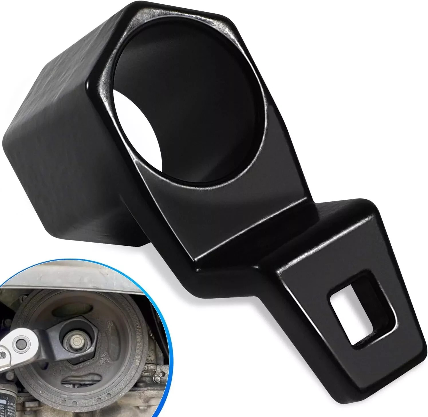 【 GREAT COMPATIBILITY】: This crankshaft pulley wrench holder tool fits for Honda (most) and Acura engines. When servicing the engine and powertrain, it can be used for the removal and installation with great convenience. 【 EXCELLENT FUCTION】: This crank pulley tool 50 mm socket holds the harmonic damper pulley in place, and prevents the harmonic damper pulley from rotating while you're removing and setting the final torque specification on the pulley bolt. 【 SPECIALLY DESIGN】: Designed with a hexagonal shape with a hole in the center of the tool that allows the use of a socket and extension to help loosen or tighten the pulley bolt. Used with a 1/2inch breaker bar or ratchet. 【 SUPERIOR MATERIAL】: Made of high quality hardened chrome molybdenum steel and heat-treated with with excellent solid and great durability. coated with black oxide finish for resisting rust and crack to long-lasting service your engine.